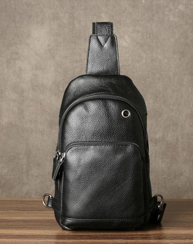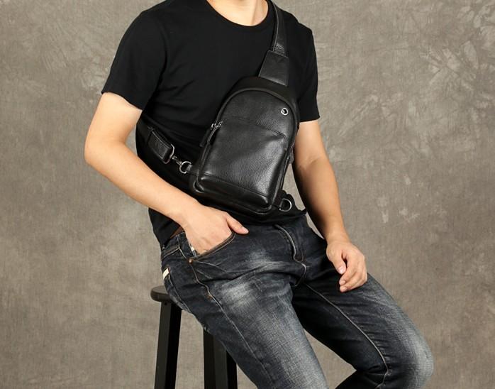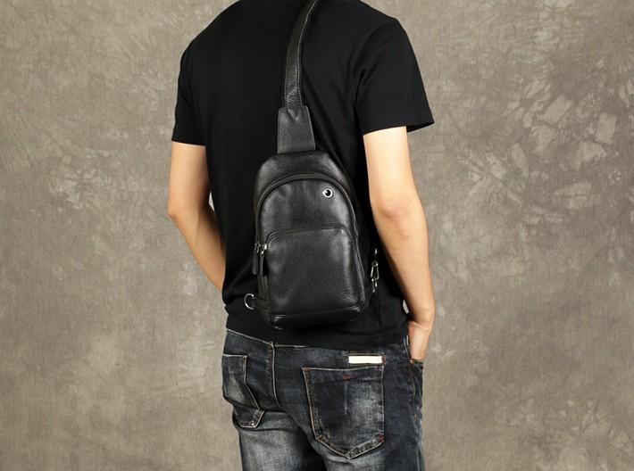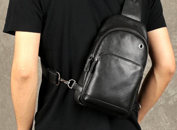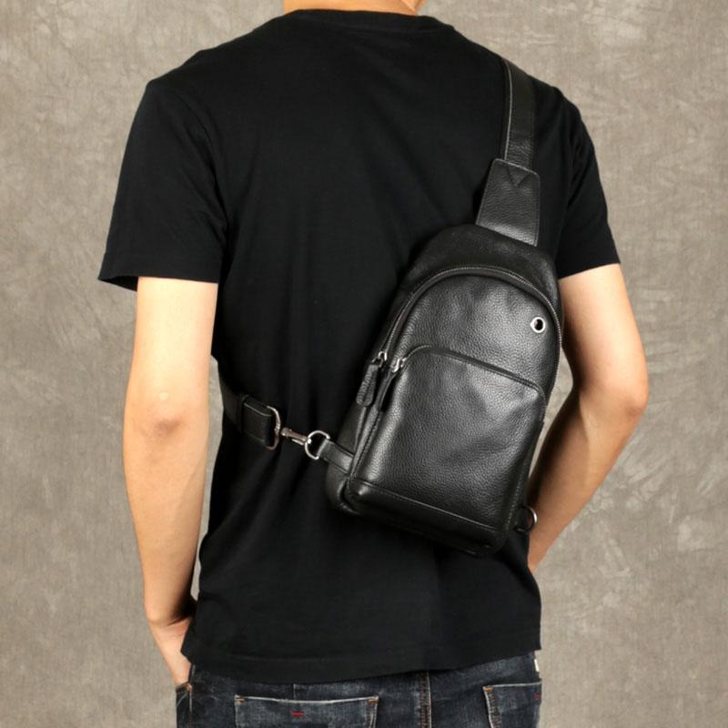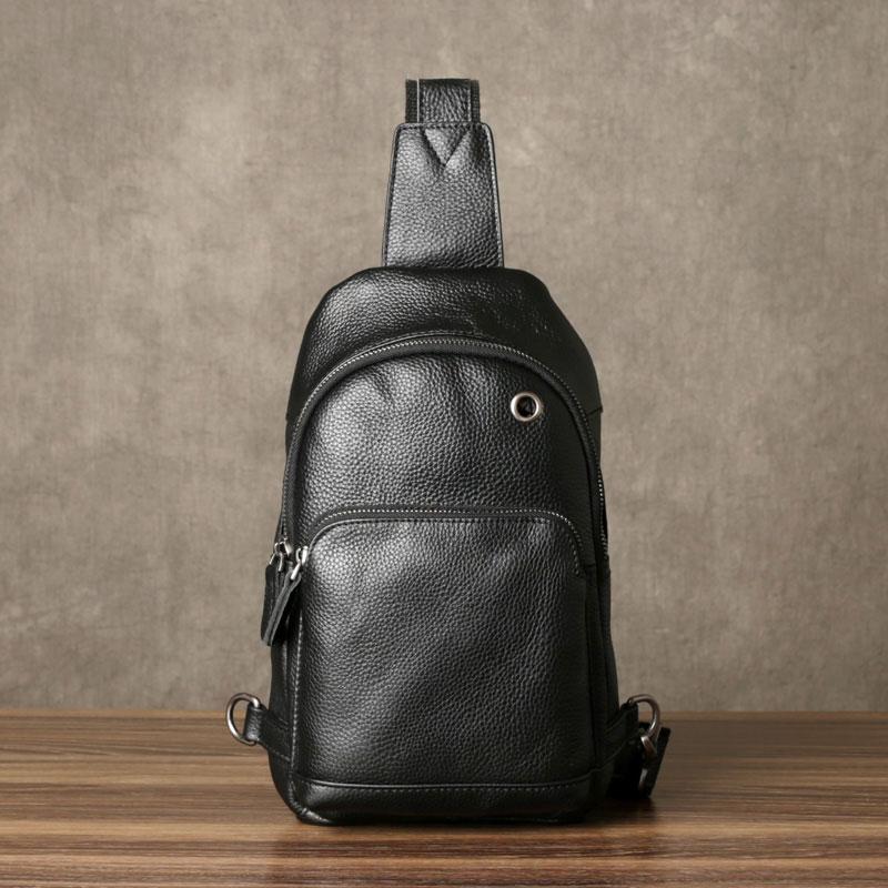Design: Genuine Leather Mens Cool Chest Bag Sling Bag Crossbody Bag Travel Bag Hiking Bag for men