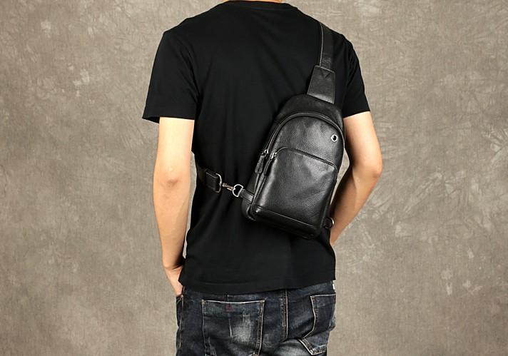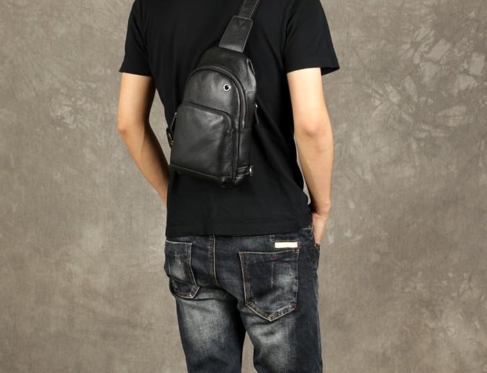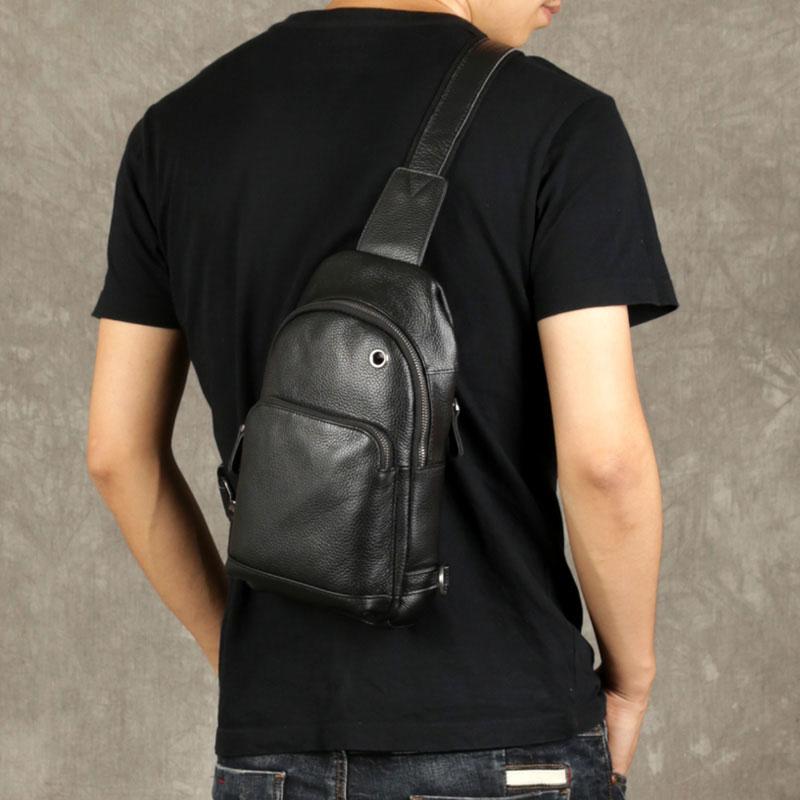 Style: Genuine Leather Mens Cool Chest Bag Sling Bag Crossbody Bag Travel Bag Hiking Bag for men