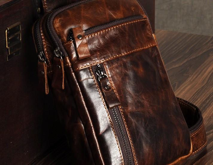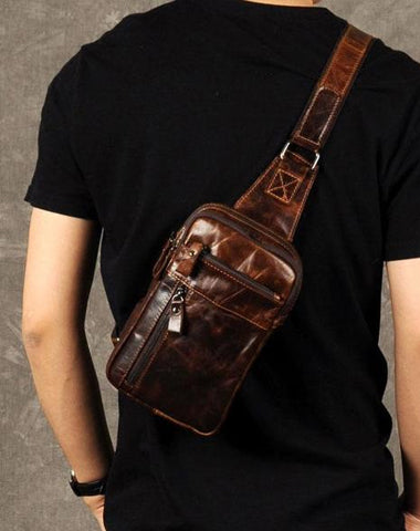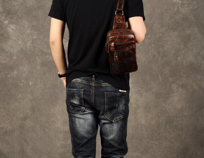 Style: Genuine Leather Mens Cool Chest Bag Sling Bag Crossbody Bag Travel Bag Hiking Bag for men