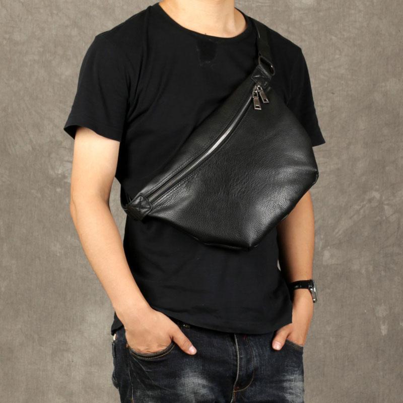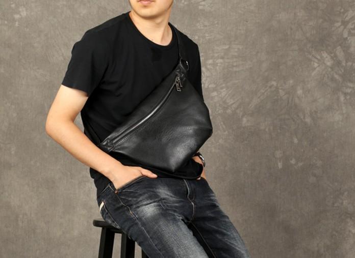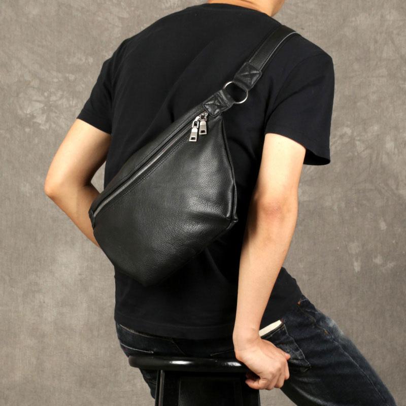 Cool Leather Mens Chest Bag Sling Bag Sling Crossbody Bag for men