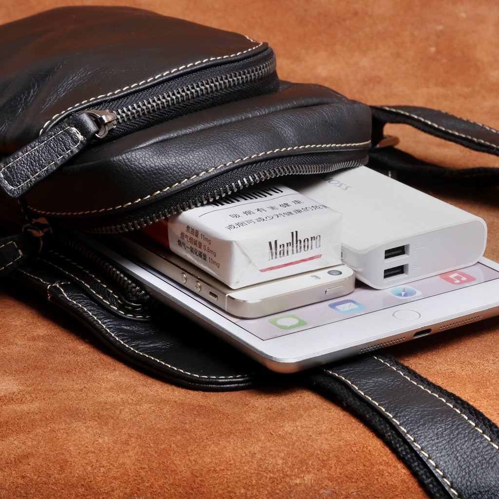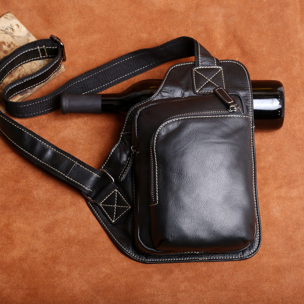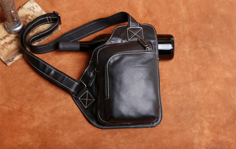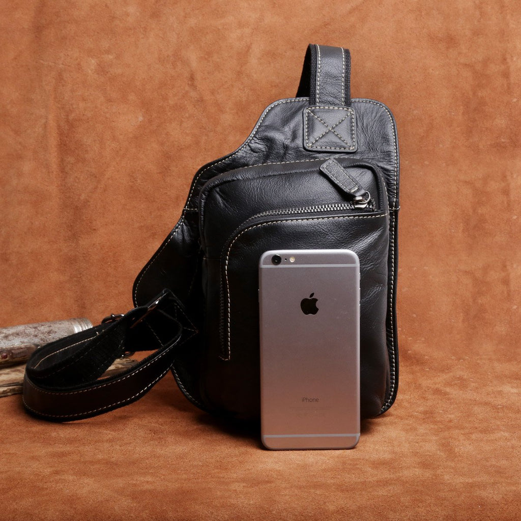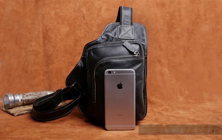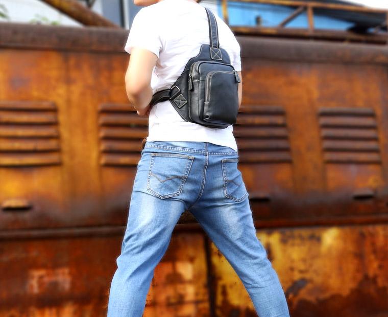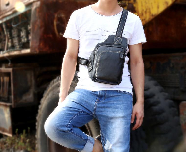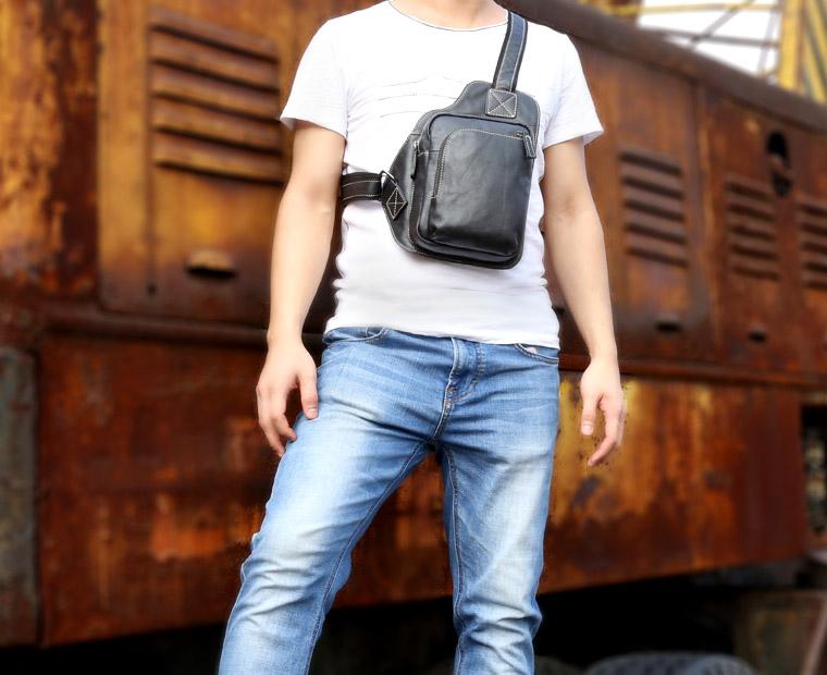 Design: Genuine Leather Mens Cool Chest Bag Sling Bag Crossbody Bag Travel Bag Hiking Bag for men