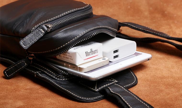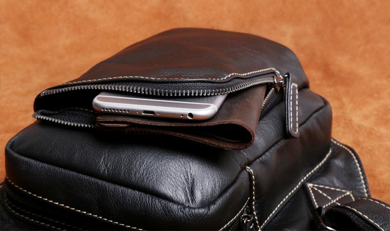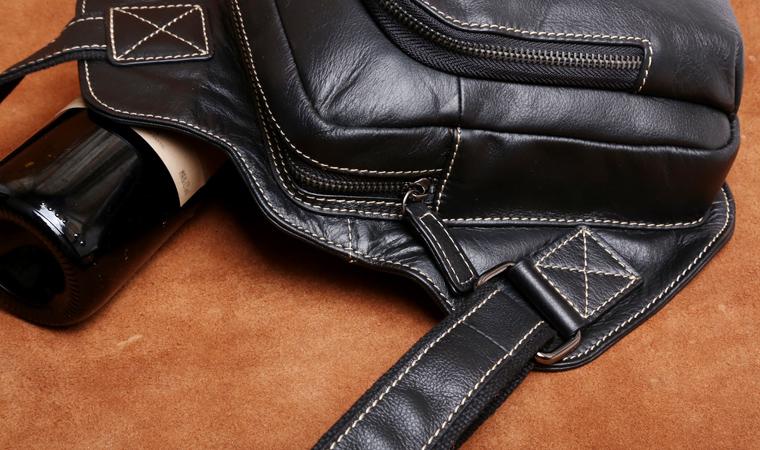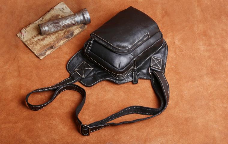Genuine Leather Mens Cool Chest Bag Sling Bag Crossbody Bag Travel Bag Hiking Bag for men
