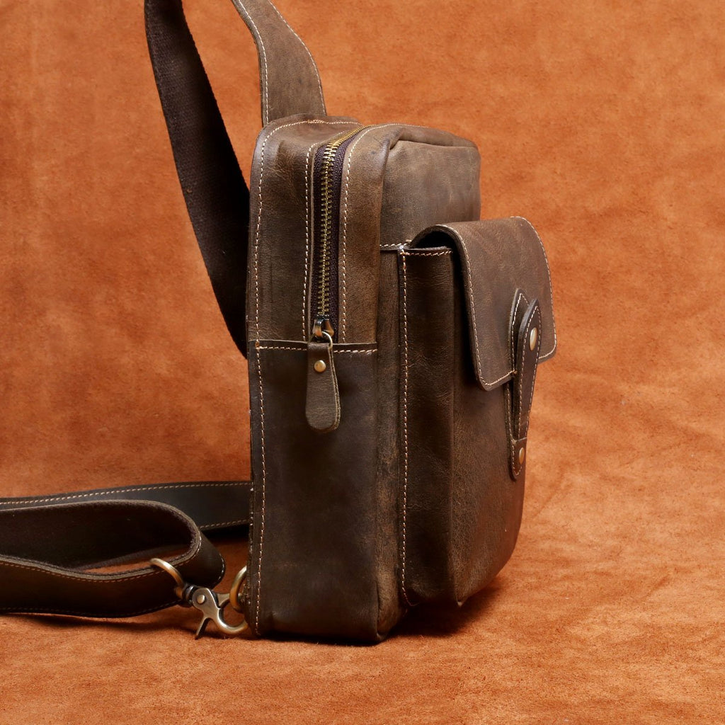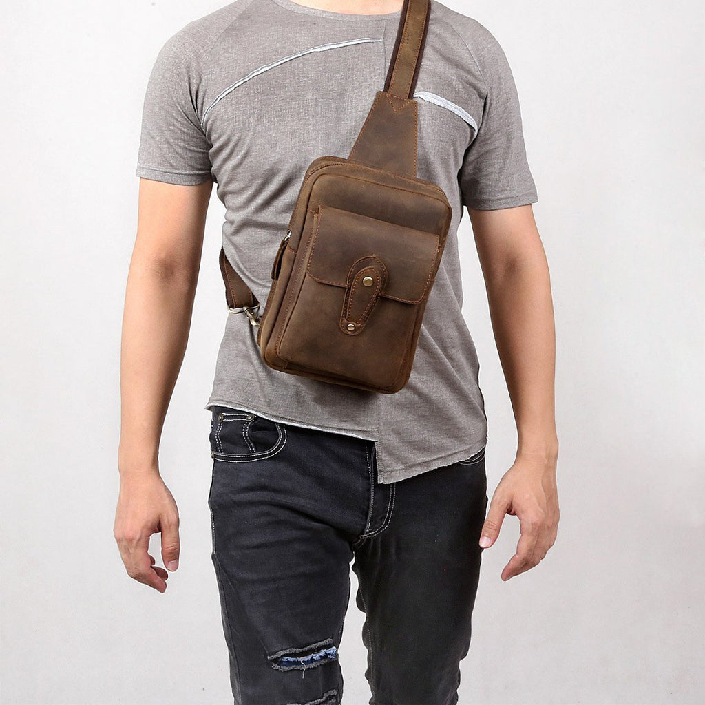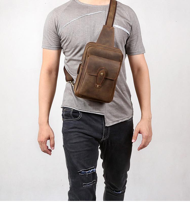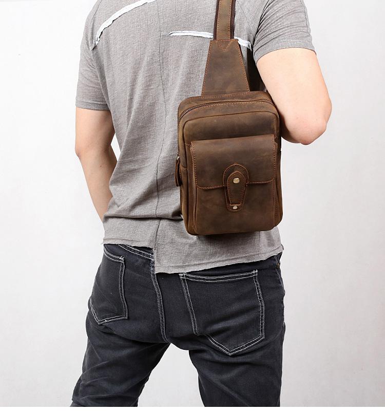Style: Genuine Leather Mens Cool Chest Bag Sling Bag Crossbody Bag Travel Bag Hiking Bag for men