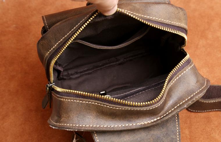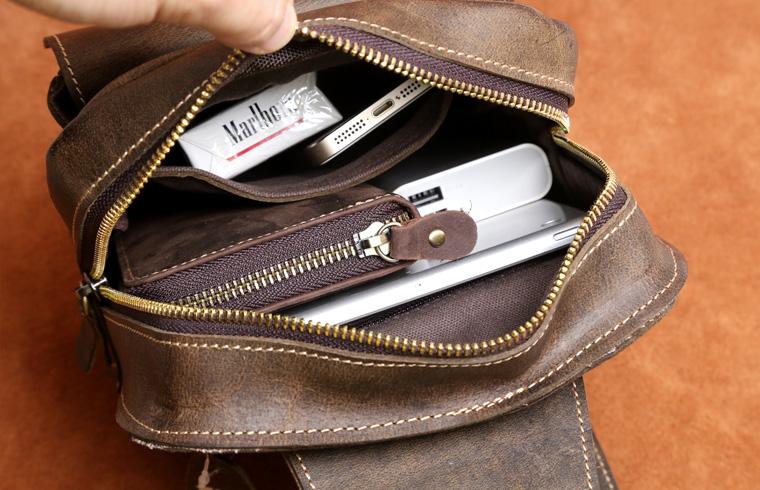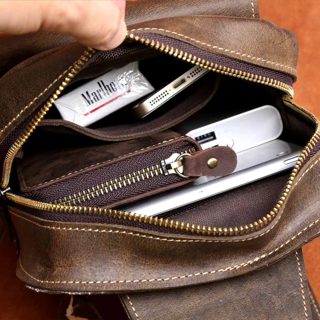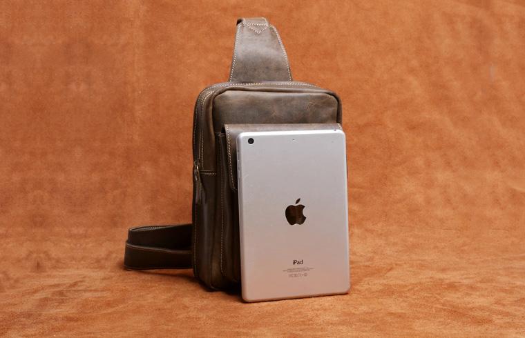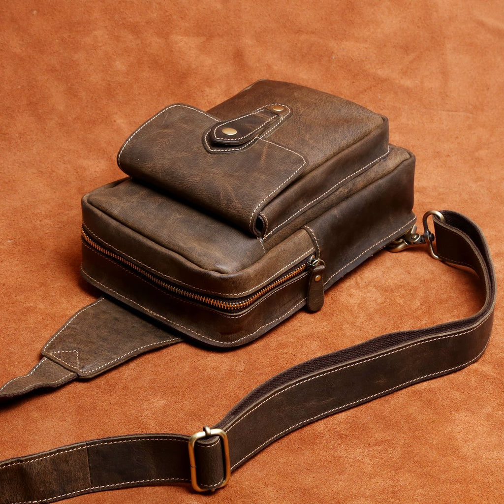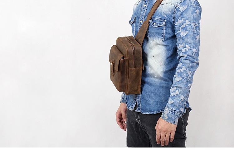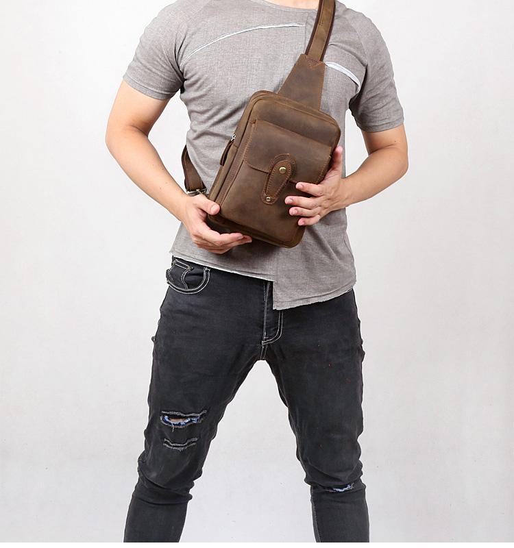 Genuine Leather Mens Cool Chest Bag Sling Bag Crossbody Bag Travel Bag Hiking Bag for men