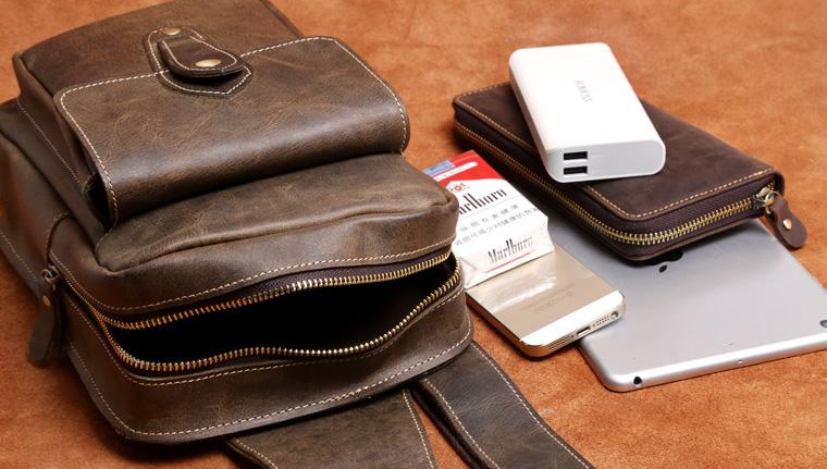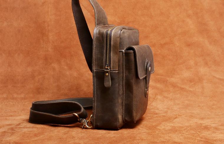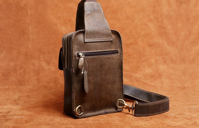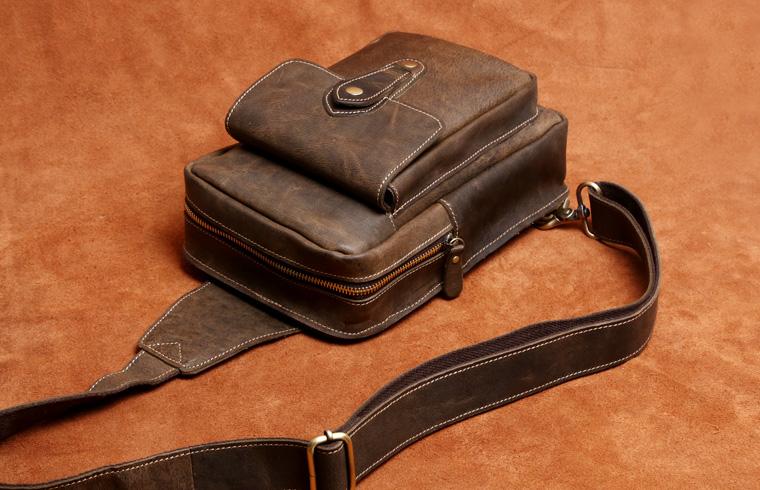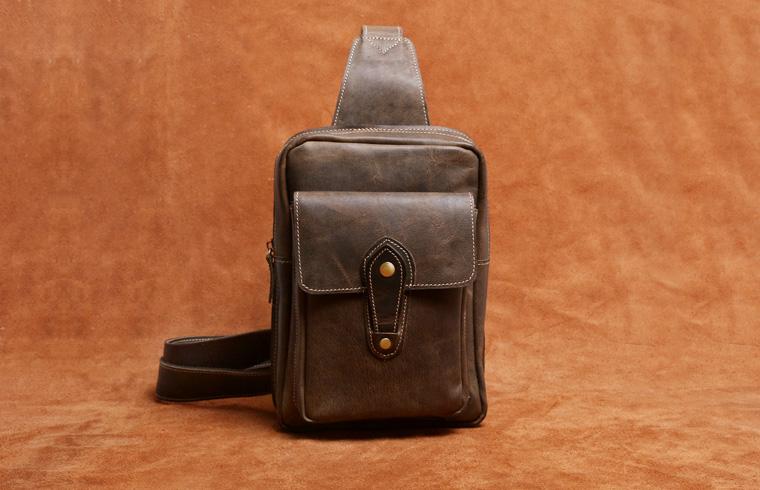 Design: Genuine Leather Mens Cool Chest Bag Sling Bag Crossbody Bag Travel Bag Hiking Bag for men