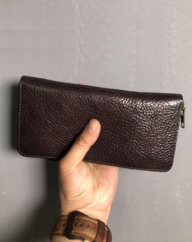 Design: Genuine Leather Mens Cool Long Leather Phone Wallet Zipper Clutch Wallet for Men