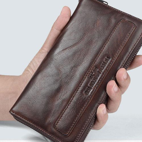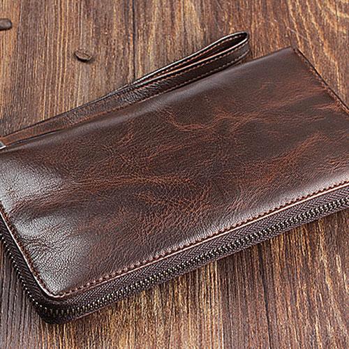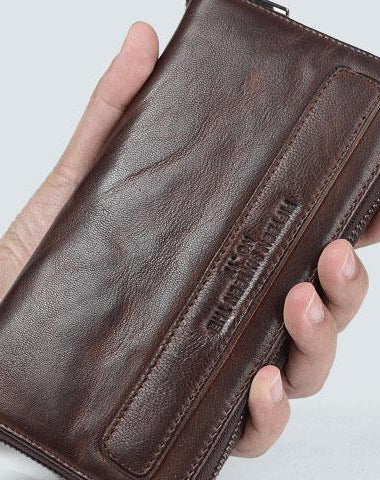 Style: Genuine Leather Mens Cool Long Leather Wallet Zipper Wristlet Clutch Wallet