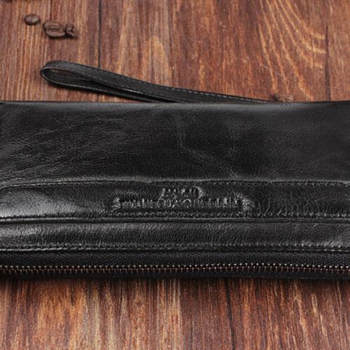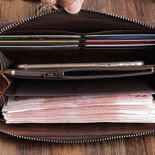 Design: Genuine Leather Mens Cool Long Leather Wallet Zipper Wristlet Clutch Wallet