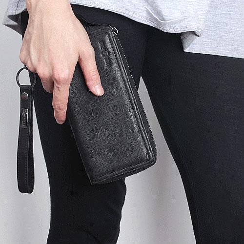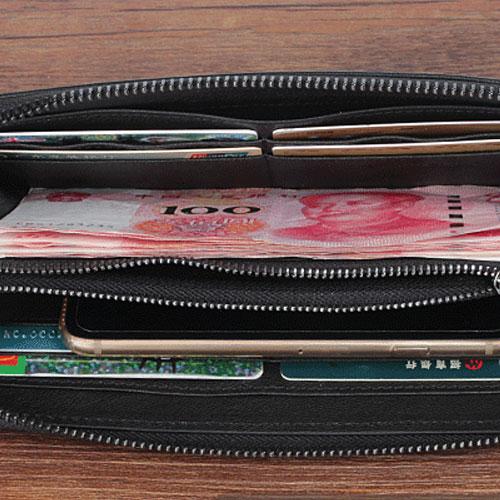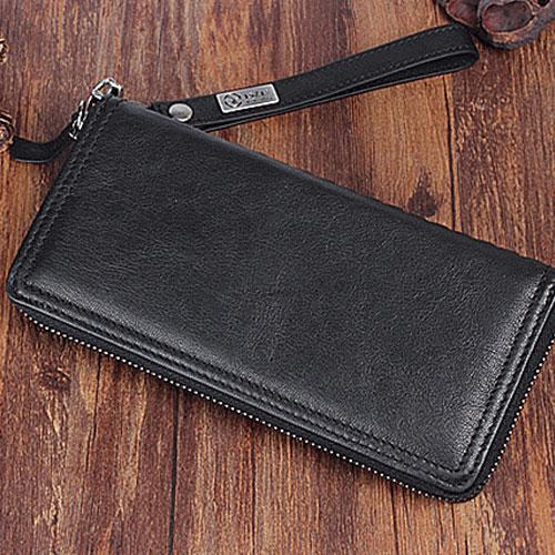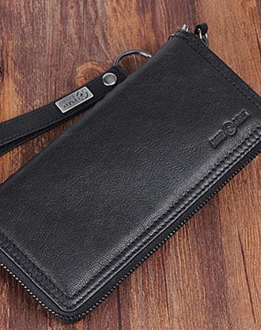 Design: Genuine Leather Mens Cool Long Leather Wallet Zipper Clutch Wallet for Men