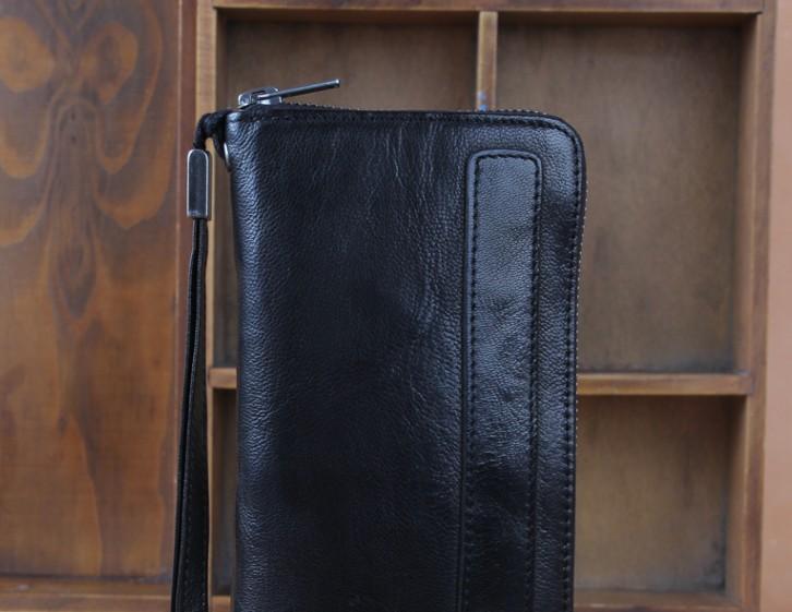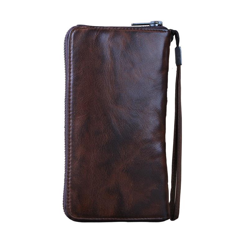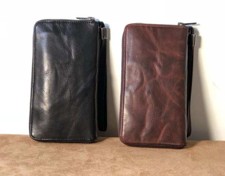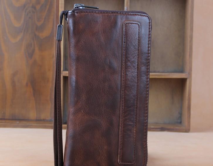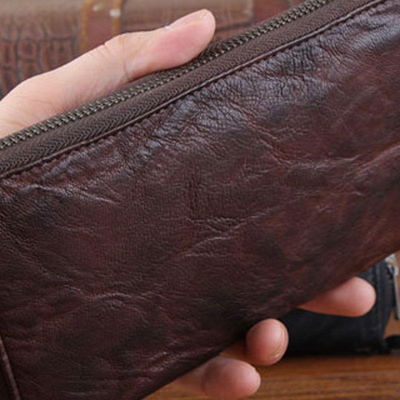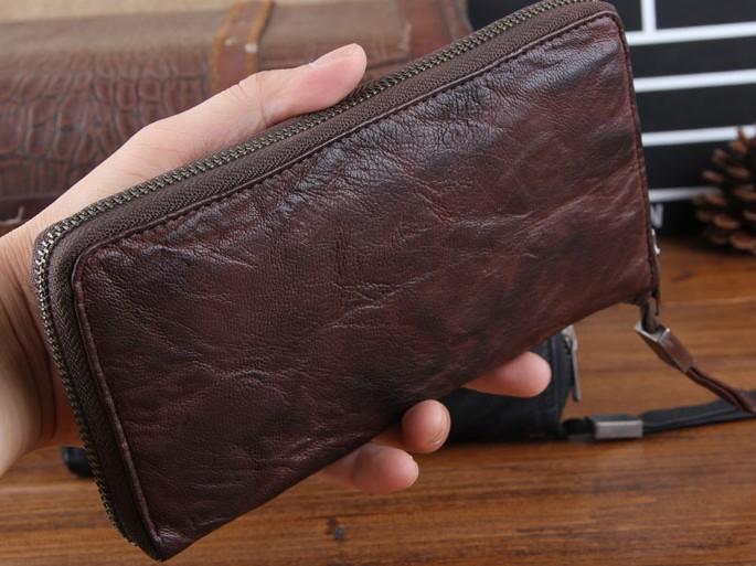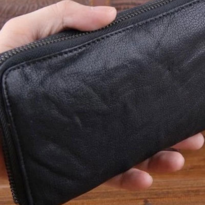Design: Genuine Leather Mens Cool Long Leather Wallet Zipper Clutch Wallet for Men