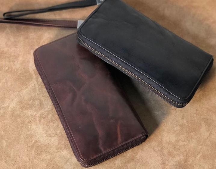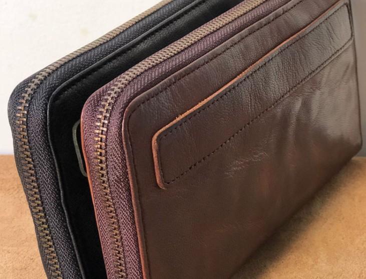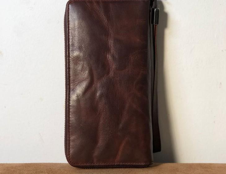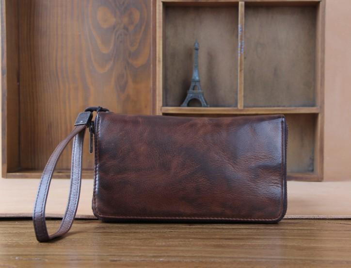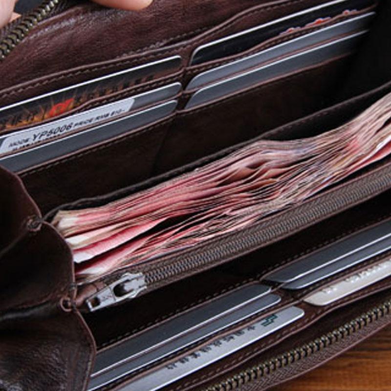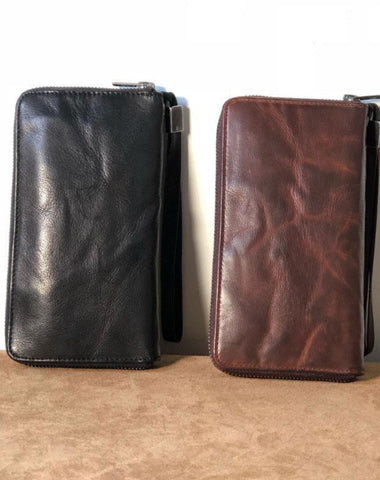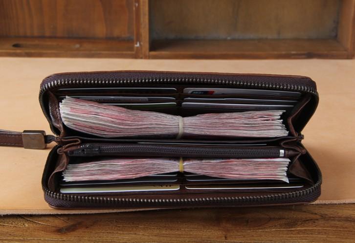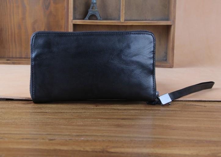 Design: Genuine Leather Mens Cool Long Leather Wallet Zipper Clutch Wallet for Men