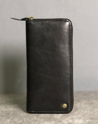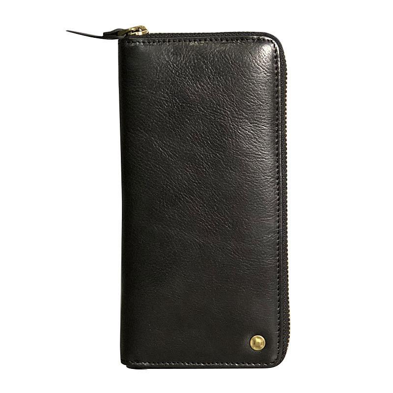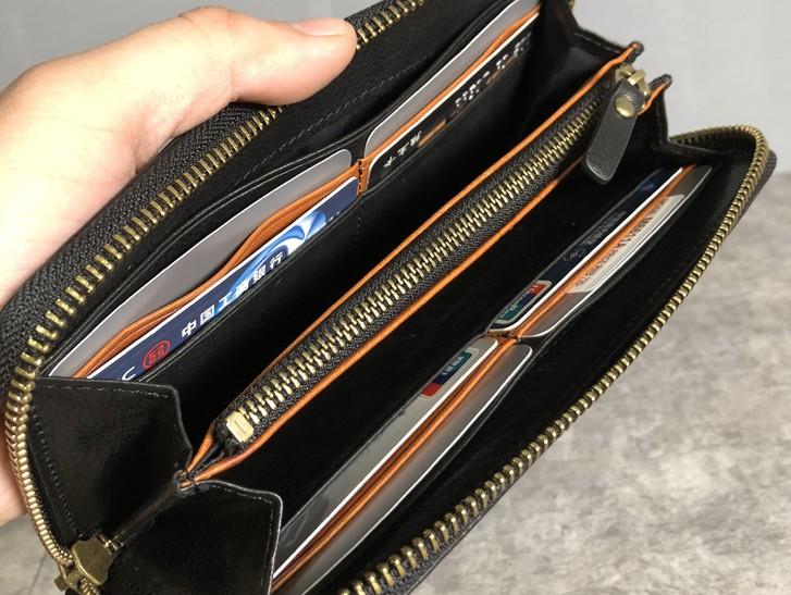 Design: Genuine Leather Mens Cool Long Leather Wallet Zipper Clutch Wallet for Men