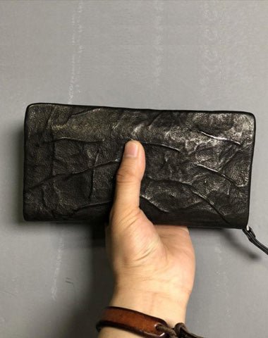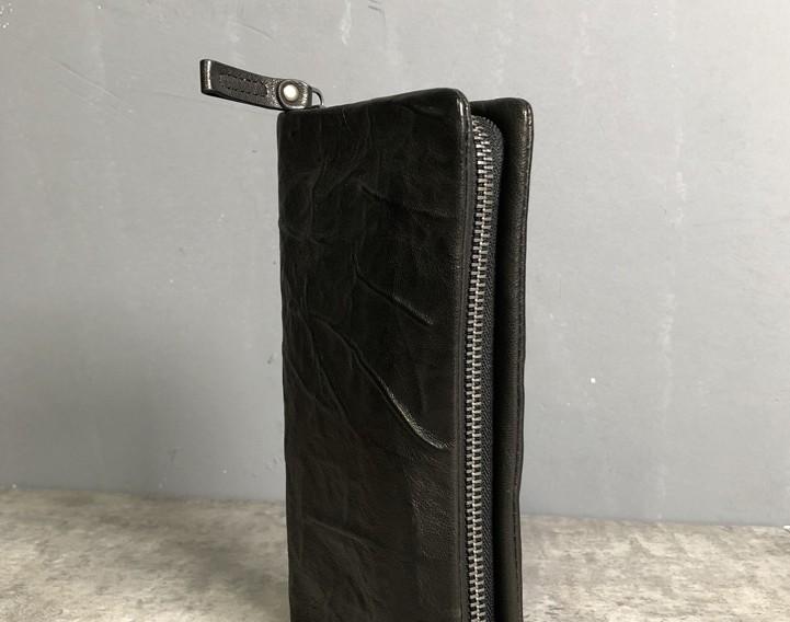 Design: Genuine Leather Mens Cool Long Leather Wallet Zipper Clutch Wallet for Men