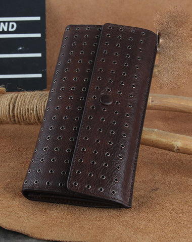 Design: Genuine Leather Mens Cool Long Leather Wallet Zipper Clutch Wallet for Men