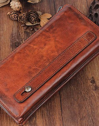 Style: Genuine Leather Mens Cool Long Leather Wallet Zipper Wristlet Clutch Wallet