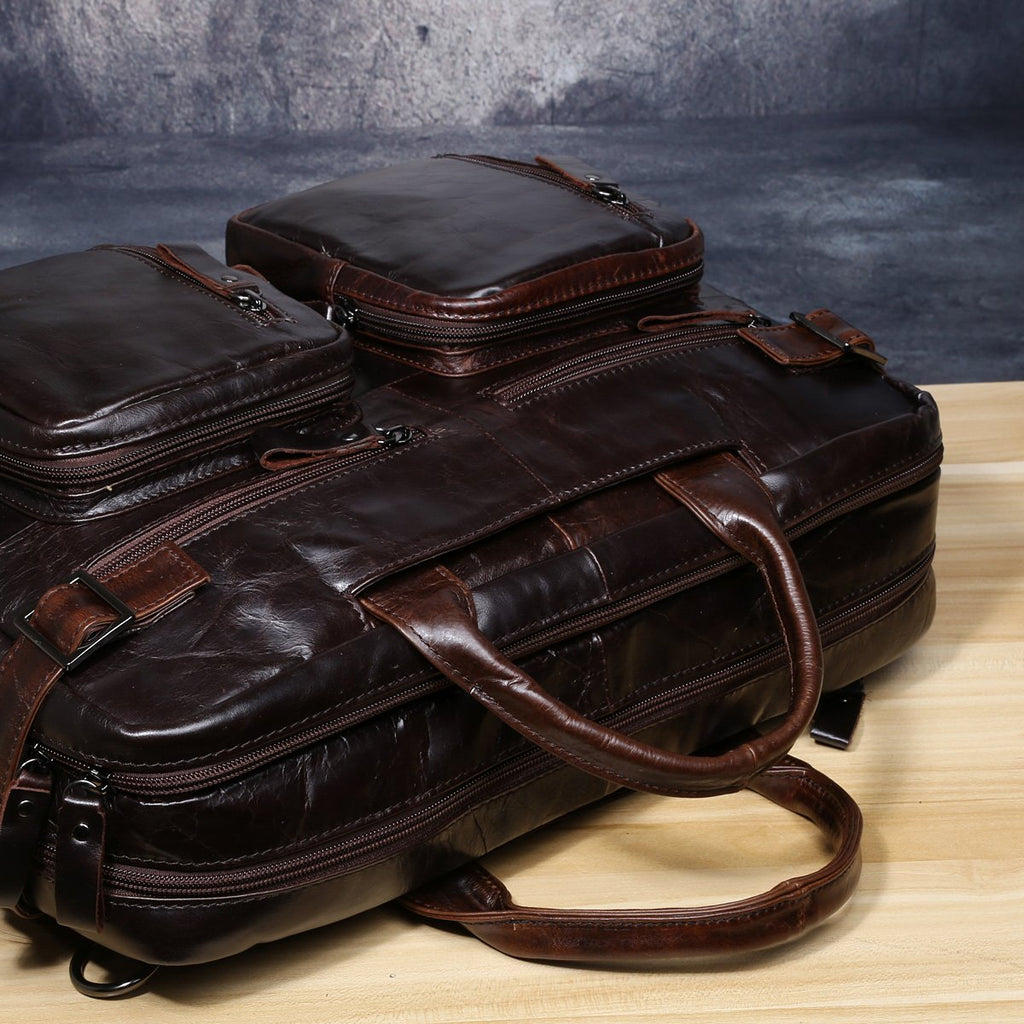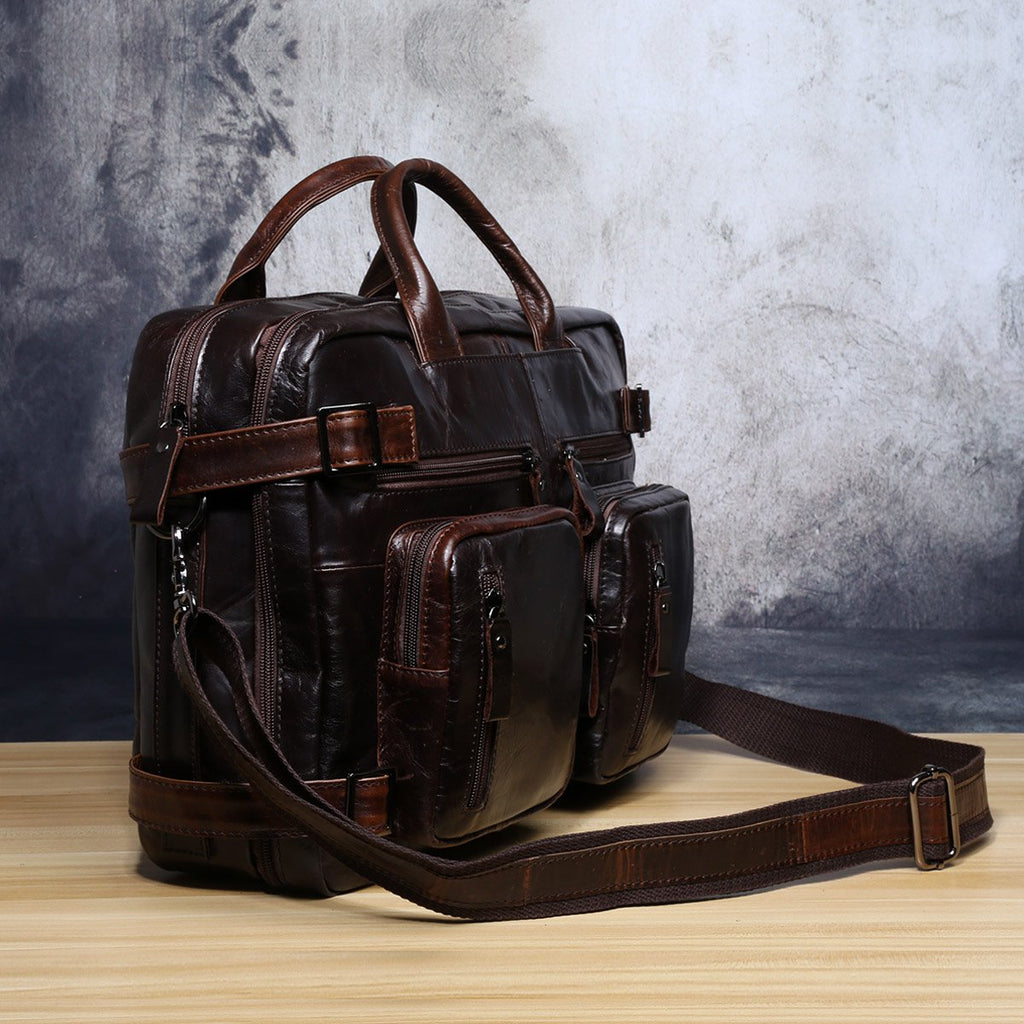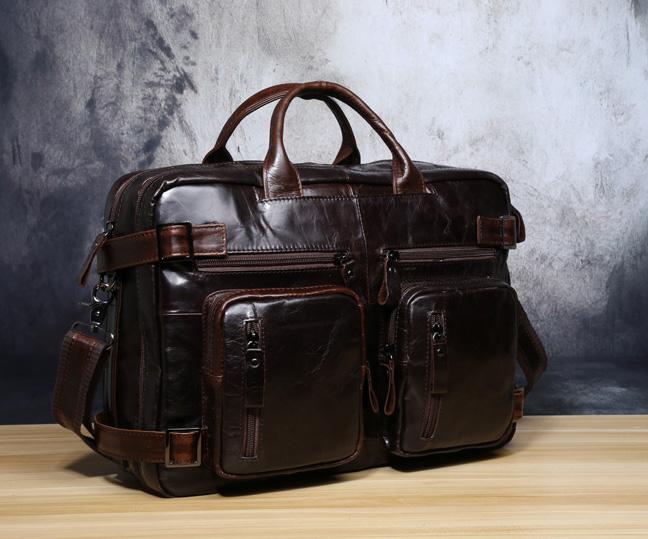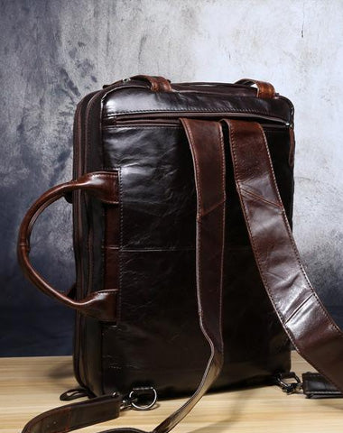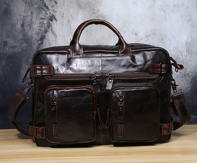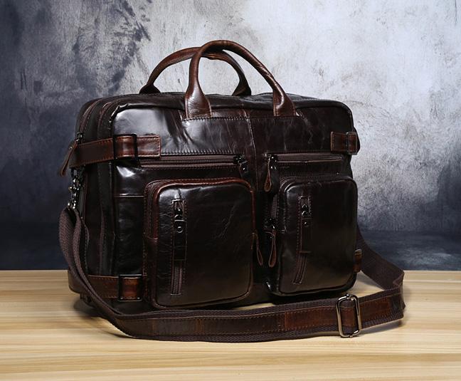 Design: Genuine Leather Mens Cool Messenger Bag Briefcase Backpack Bag Travel Bag for Men