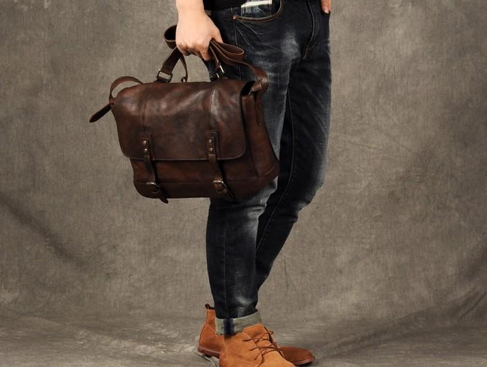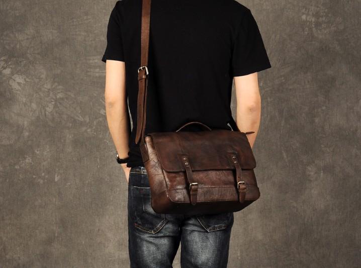 Design: Genuine Leather Mens Cool Messenger Bag Briefcase Work Bag Business Bag for men