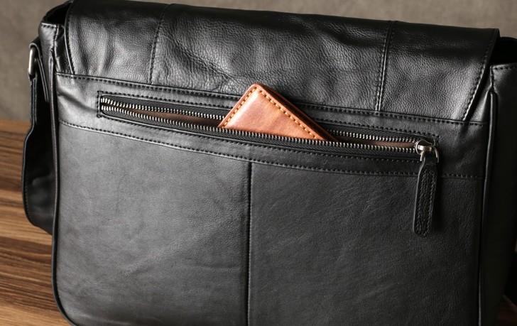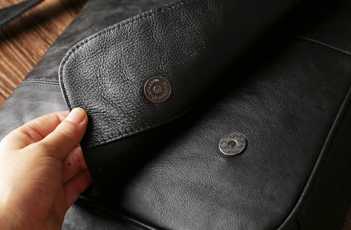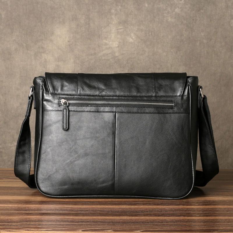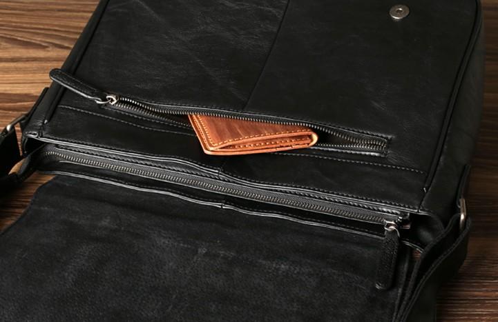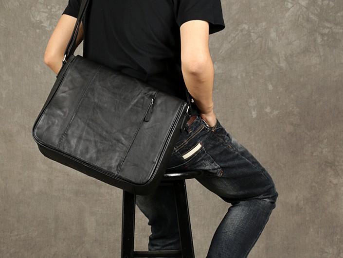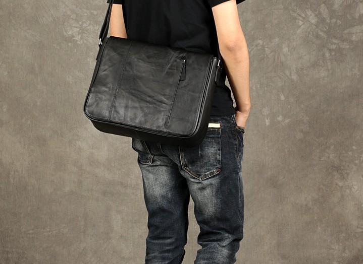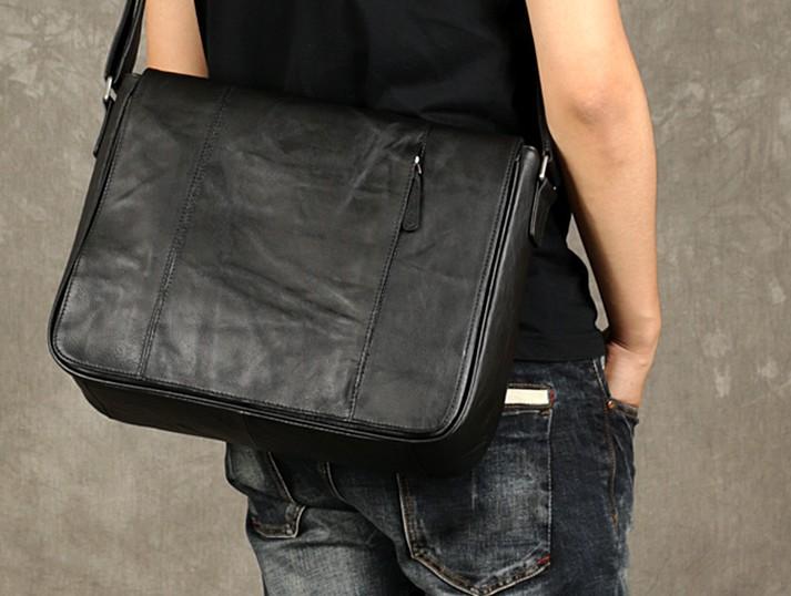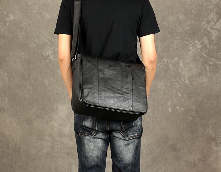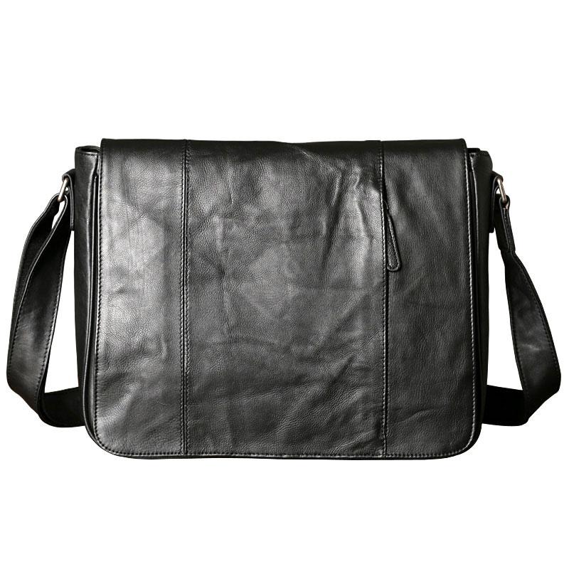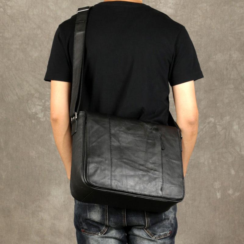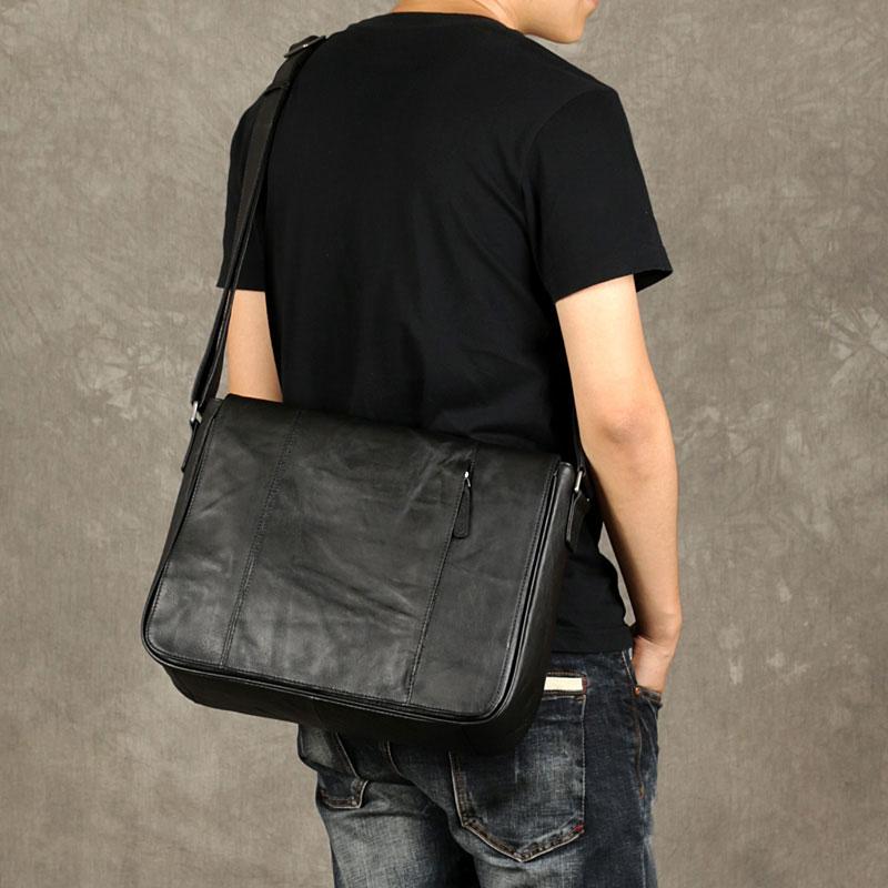 Black Leather Mens Cool Large Messenger Bag Shoulder Bag Cycling Crossbody Bag for men