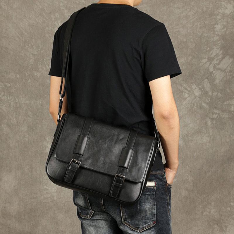 Design: Genuine Leather Mens Cool Messenger Bag Shoulder Bag Chest Bag Bike Bag Cycling Bag for men