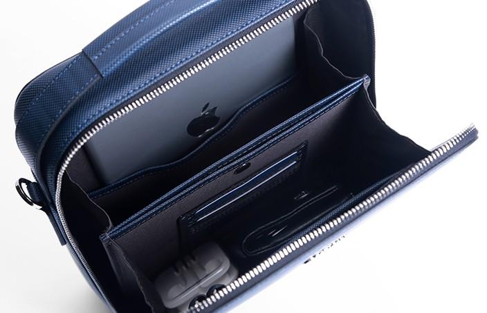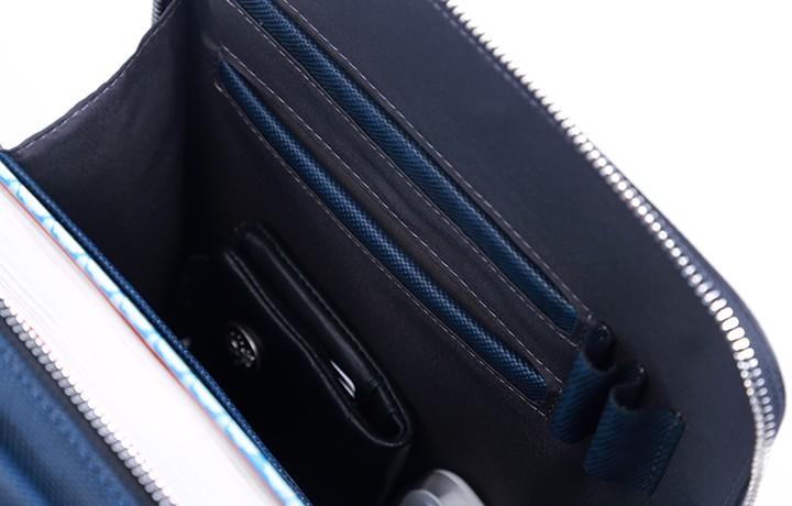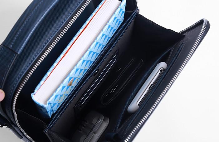 Slots: 1 zipper slot, 1 book slot, 3 wallet slots, 1 phone slot