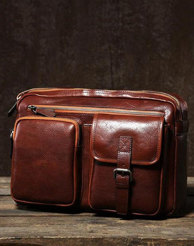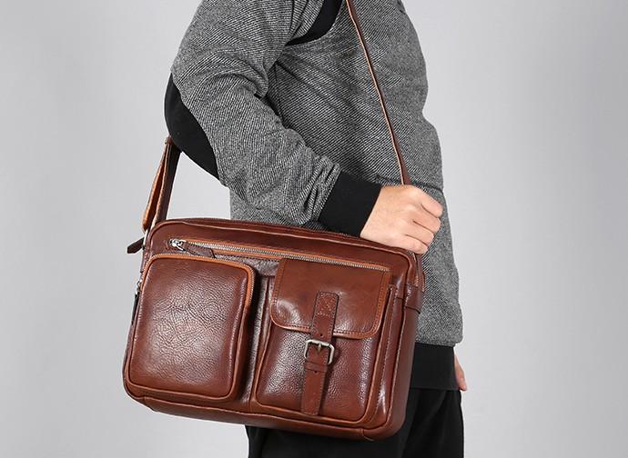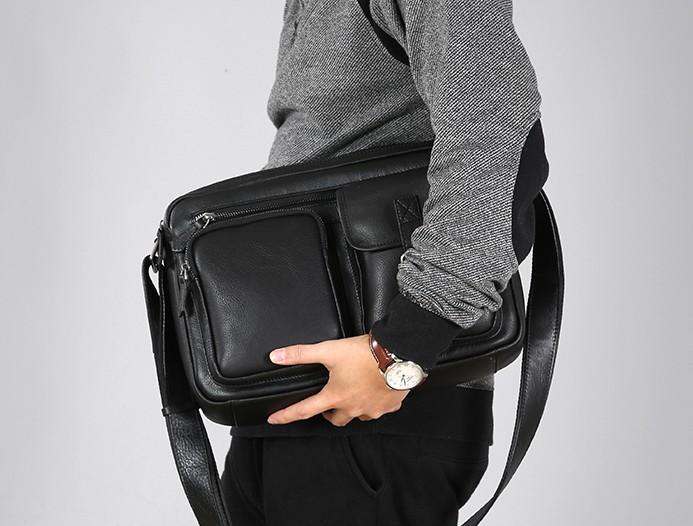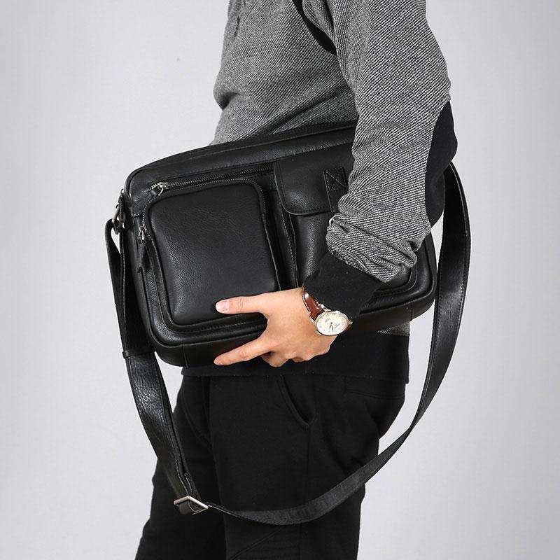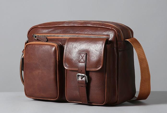 Design: Genuine Leather Mens Cool Shoulder Bag Messenger Bag Chest Bag Bike Bag Cycling Bag for men