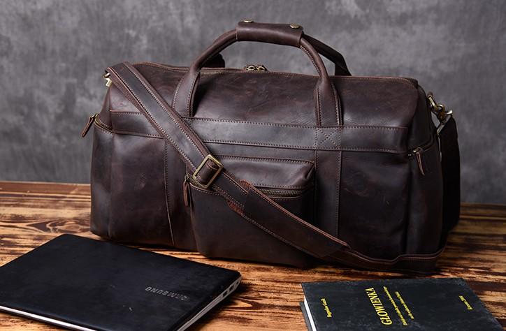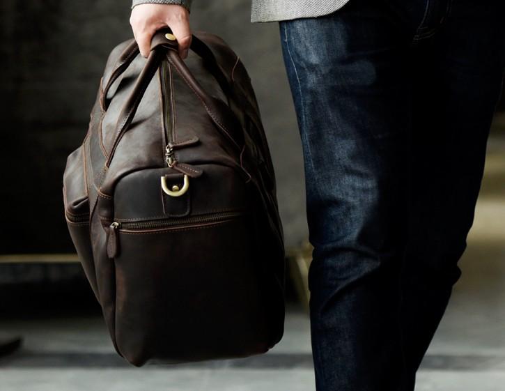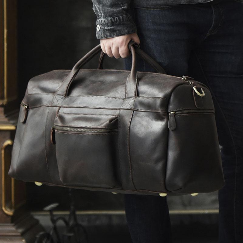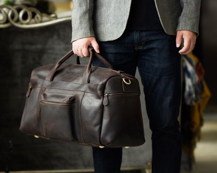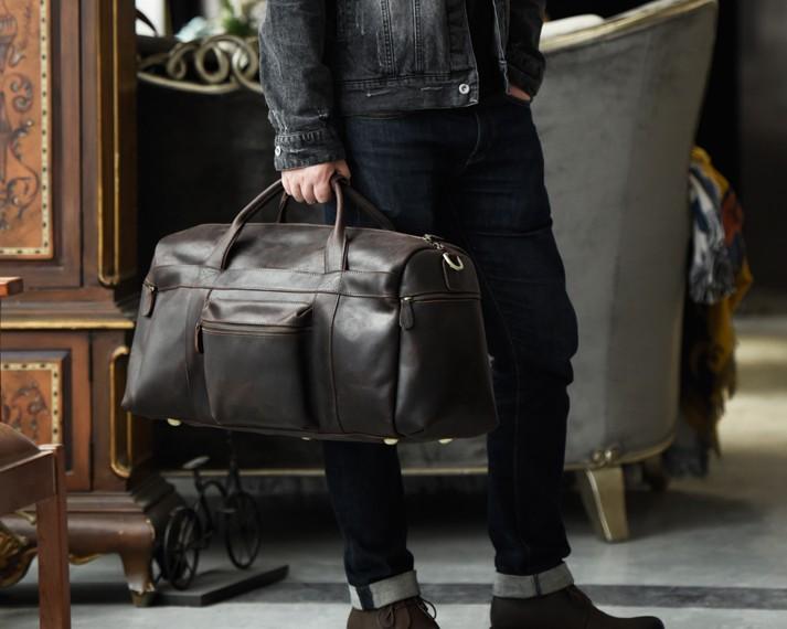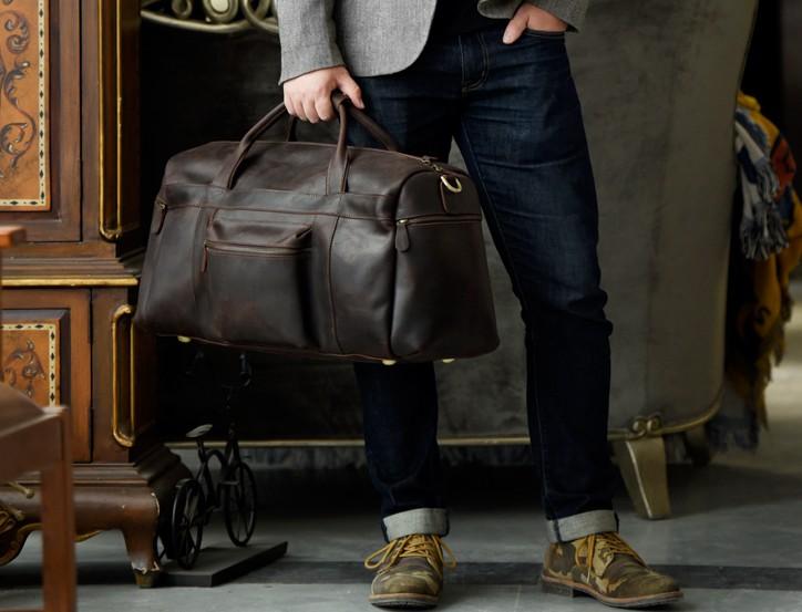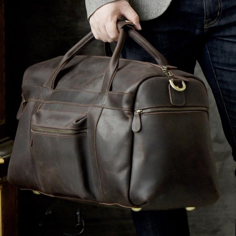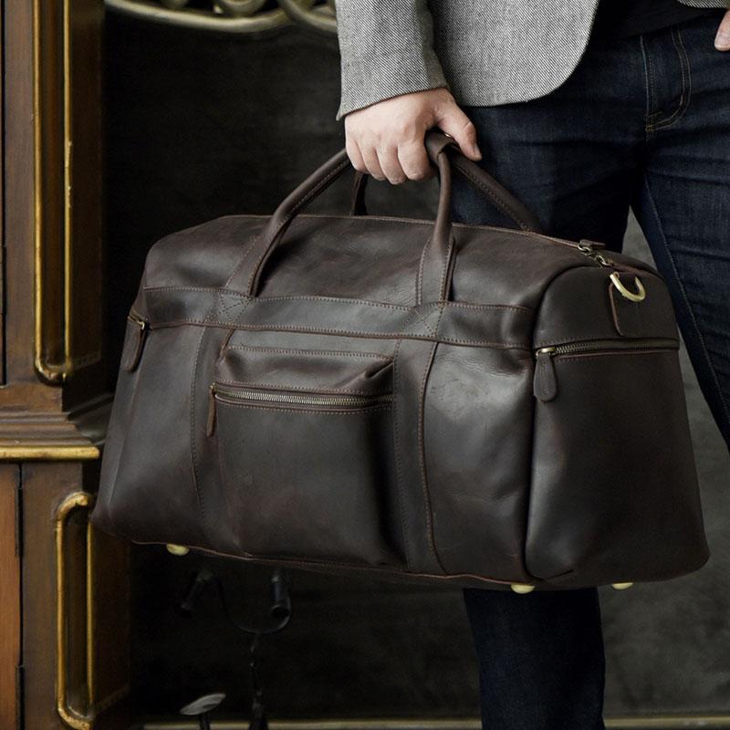 Style: Genuine Leather Mens Cool Weekender Bag Travel Bag Duffle Bags Overnight Bag Holdall Bag for men