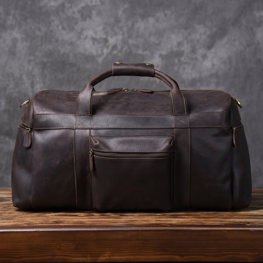 Design: Genuine Leather Mens Cool Weekender Bag Travel Bag Duffle Bags Overnight Bag Holdall Bag for men