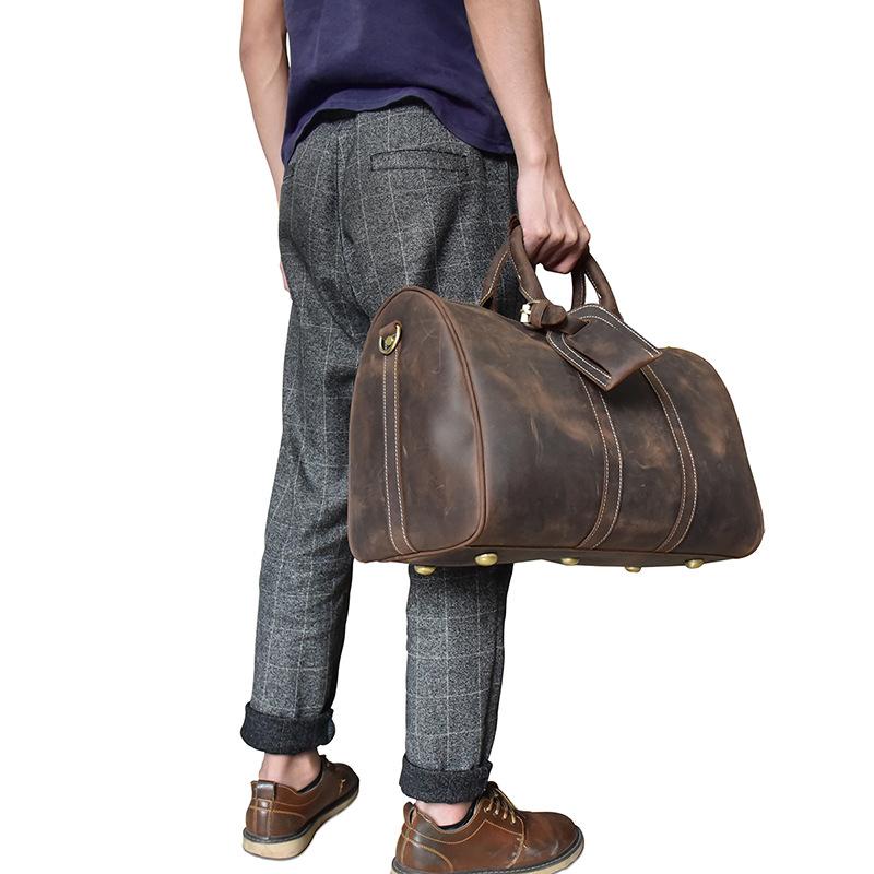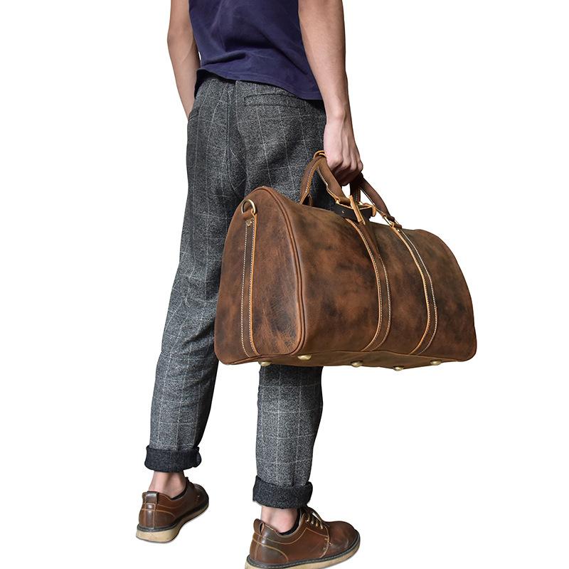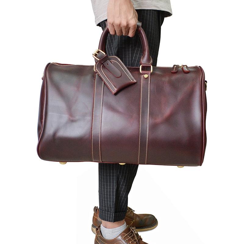 Style: Genuine Leather Mens Cool Weekender Bag Travel Bag Duffle Bags Overnight Bag Holdall Bag for men