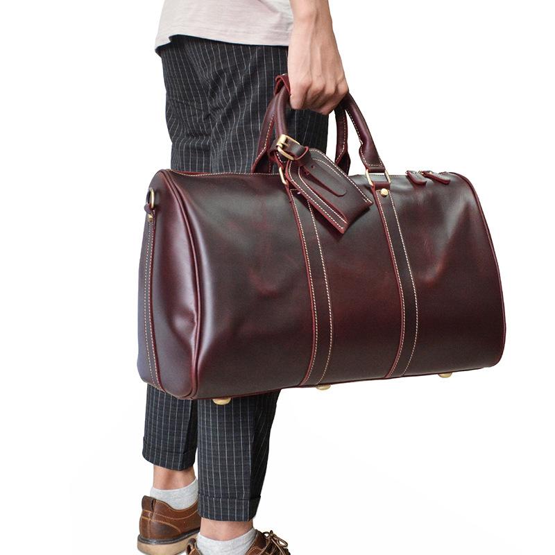 Design: Genuine Leather Mens Cool Weekender Bag Travel Bag Duffle Bags Overnight Bag Holdall Bag for men