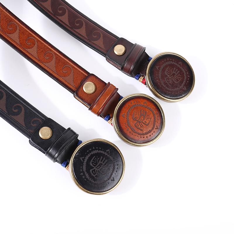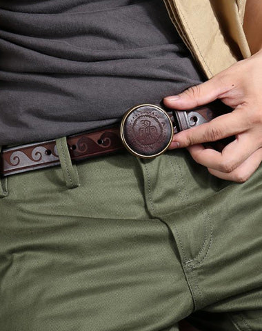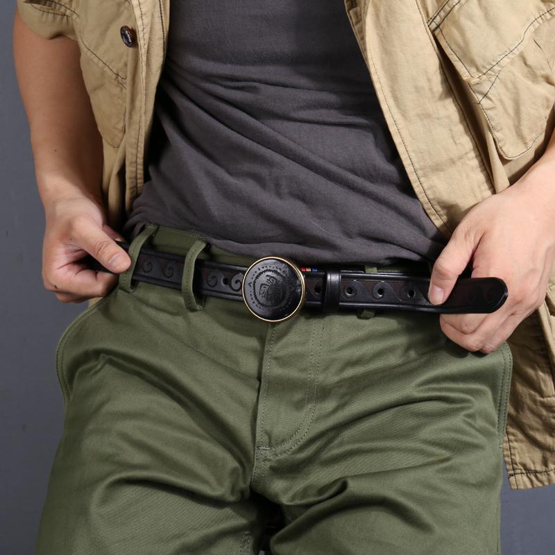 Style: Genuine Leather Mens Embossed Black Belt Smooth Buckle Belt Brown Belt For Men