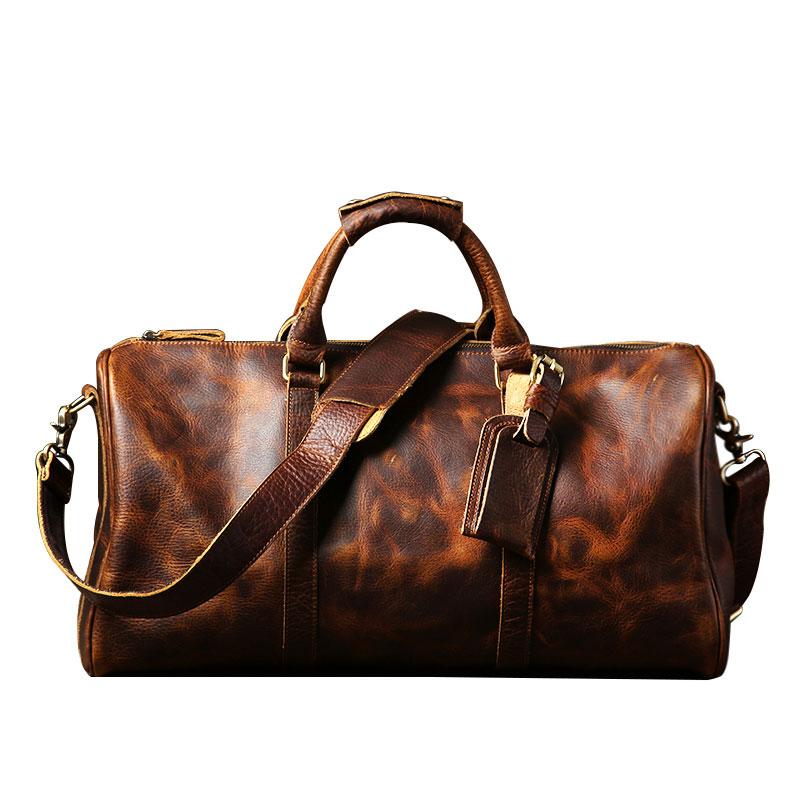 Style: Genuine Leather Mens Large Blue Travel Bag Cool Duffle Bag Shoulder Bag Weekender Bag for Men