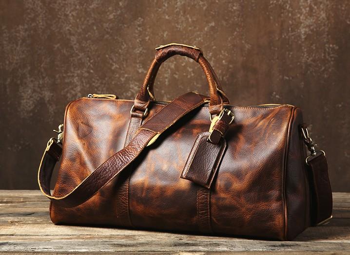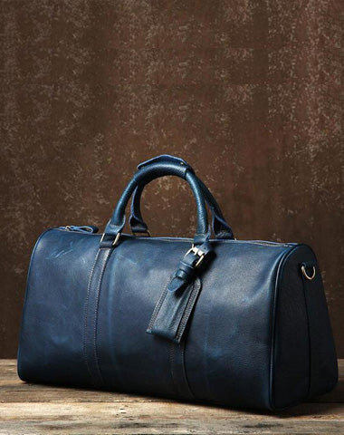 Design: Genuine Leather Mens Large Blue Travel Bag Cool Duffle Bag Shoulder Bag Weekender Bag for Men