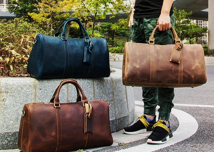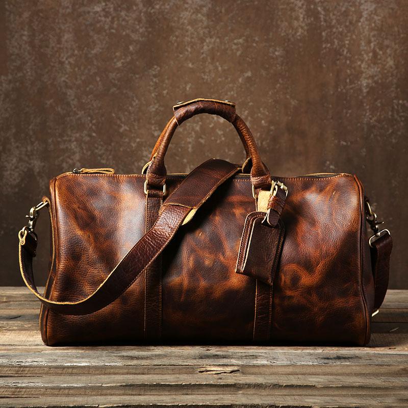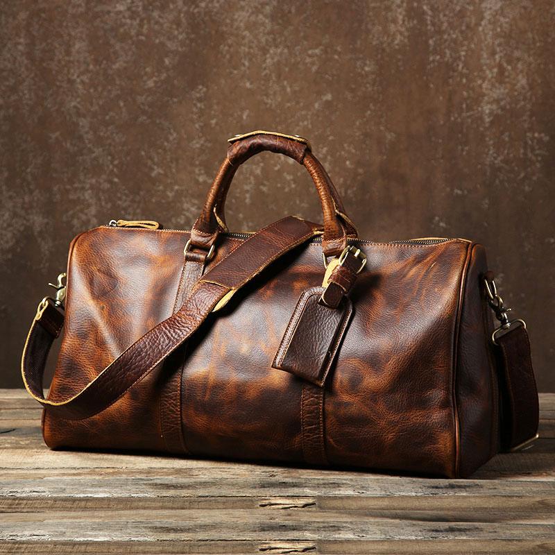 Design: Genuine Leather Mens Large Travel Bag Cool Duffle Bag Shoulder Bag Weekender Bag for Men