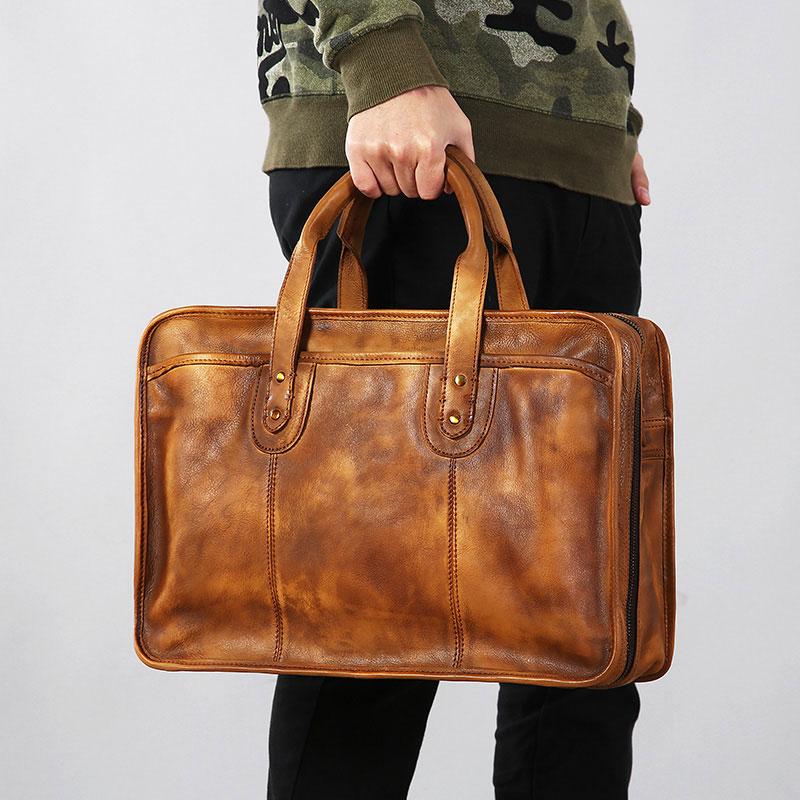 Design: Genuine Leather Mens Large Travel Bag Cool Messenger Bag Shoulder Bag Laptop Bag Briefcase Weekender Bag for Men