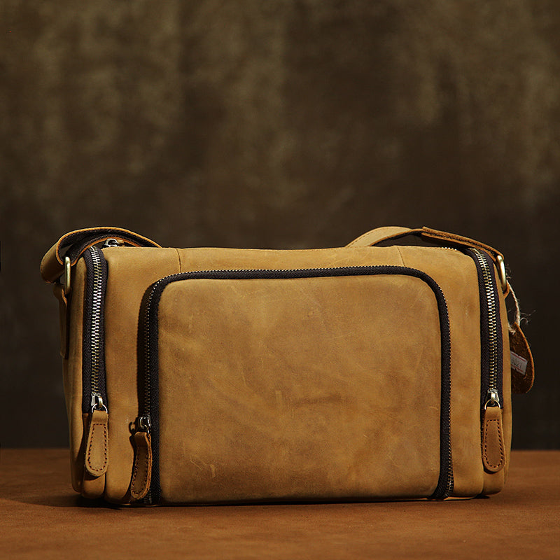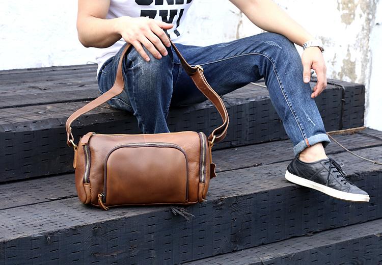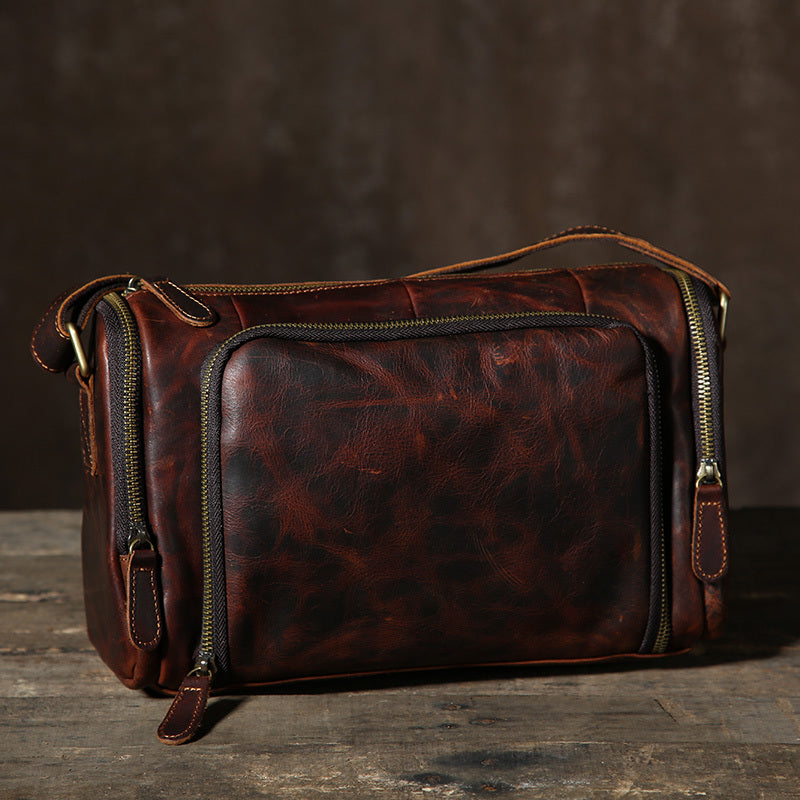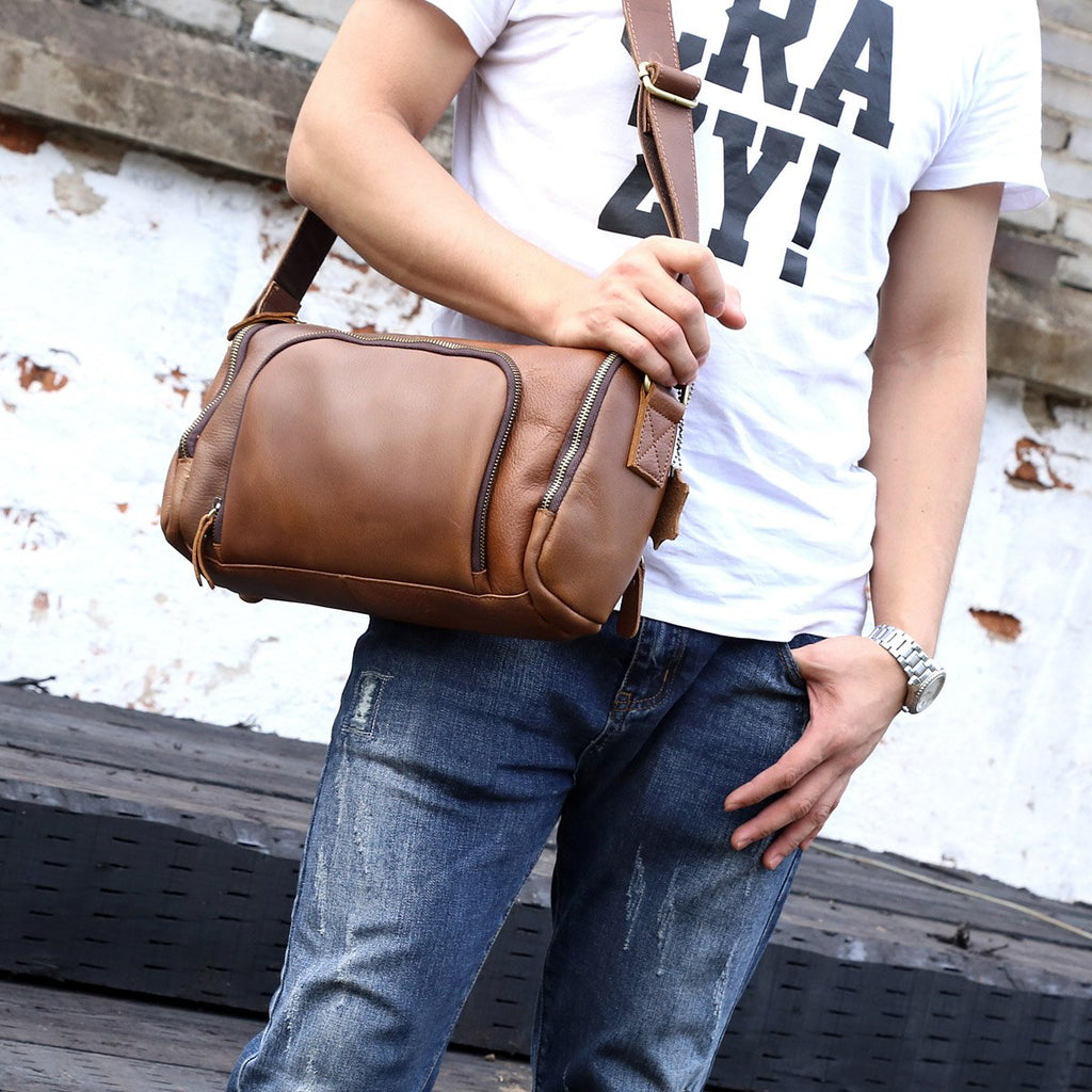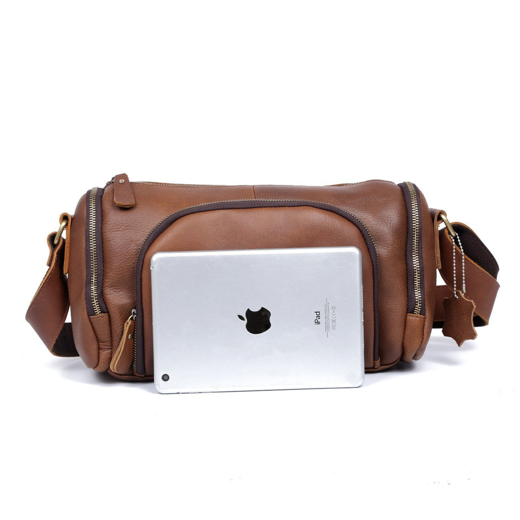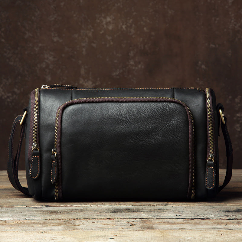 Design: Genuine Leather Mens Bucket Bag Cool Weekender Bag Travel Bag Duffle Bags Overnight Bag Holdall Bag for men