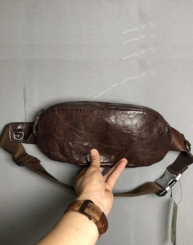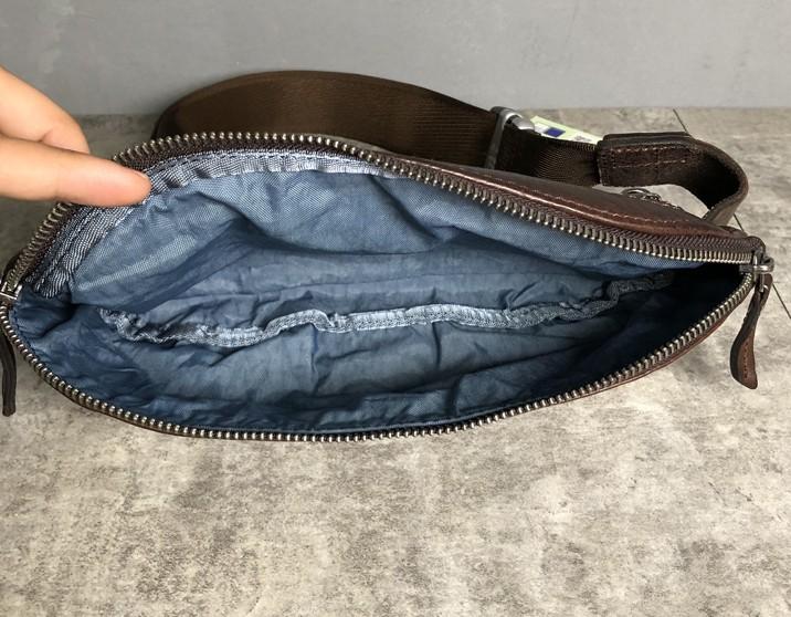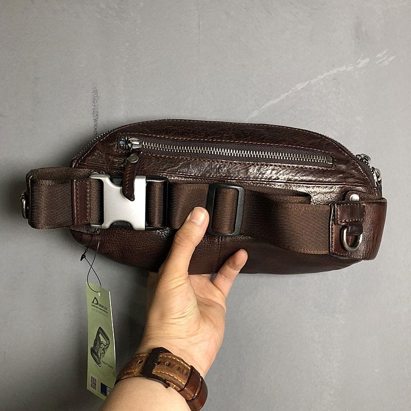 Design: Genuine Leather Mens Small Chest Bag Sling Bag Waist Bag Hip Pack Belt Bag Fanny Pack Bumbag for Men