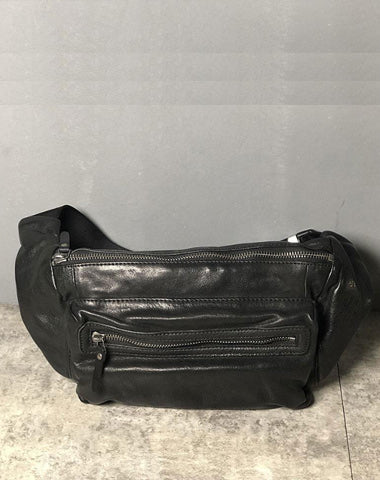 Design: Genuine Leather Mens Small Chest Bag Sling Bag Waist Bag Hip Pack Belt Bag Fanny Pack Bumbag for Men