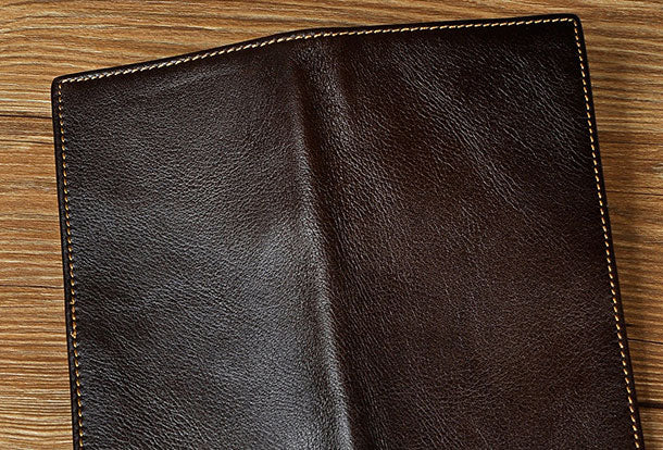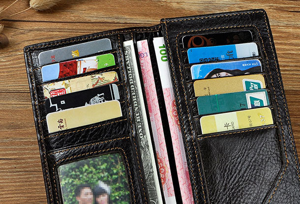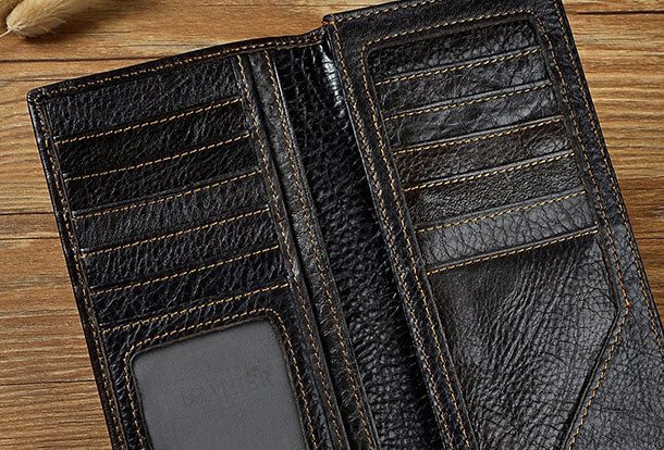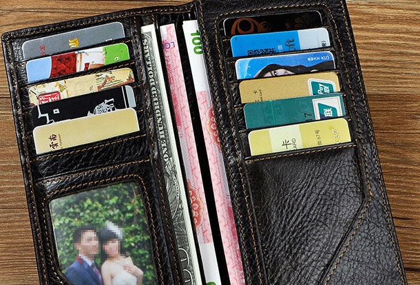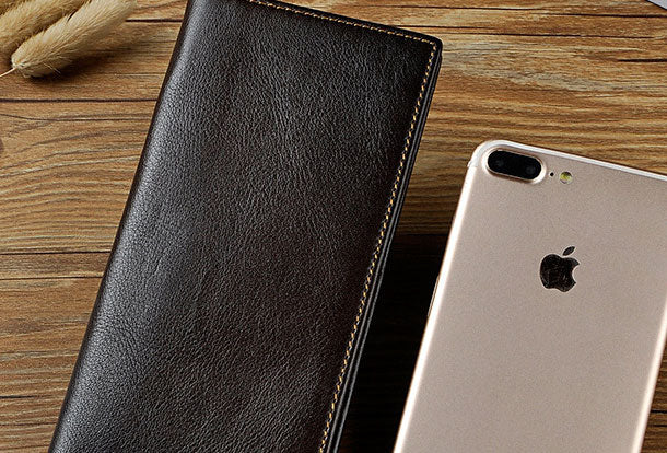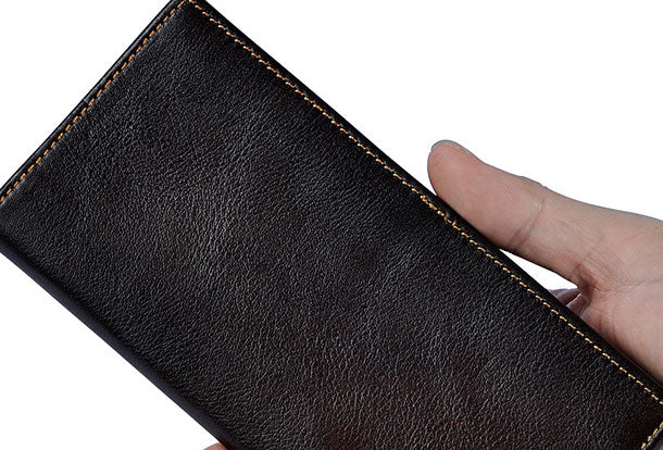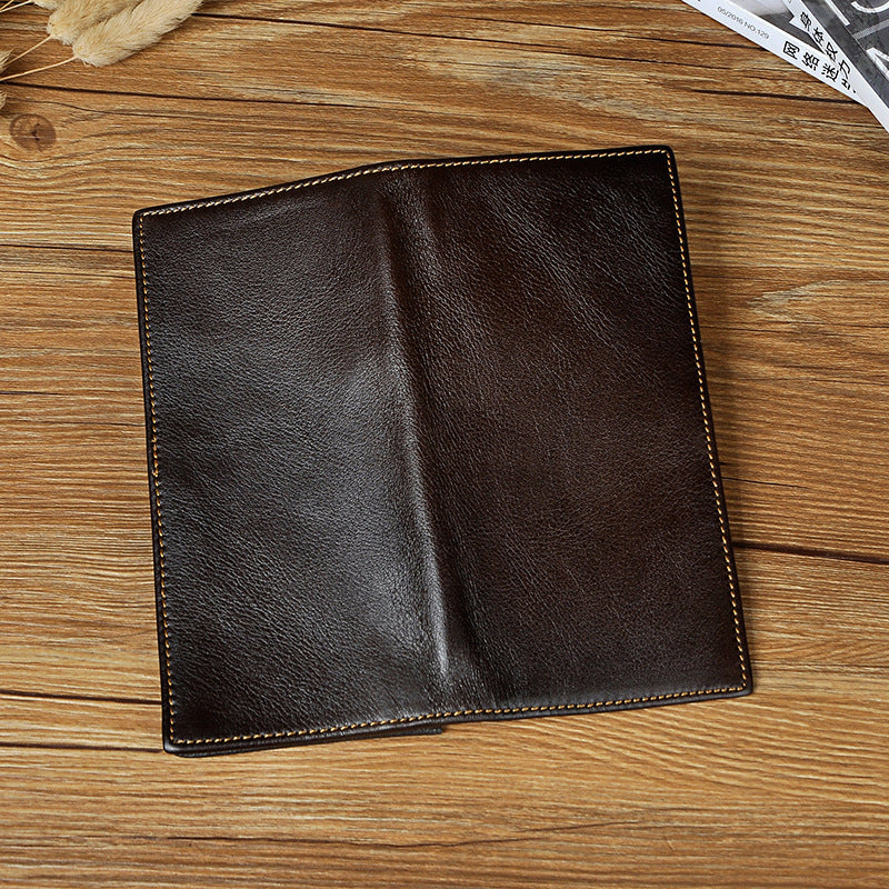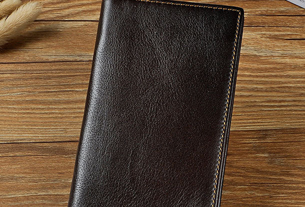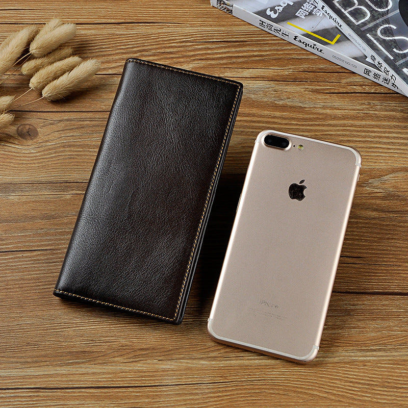 Genuine Leather Mens Bifold Wallet Coffee Long Wallet for Men with Multi Cards