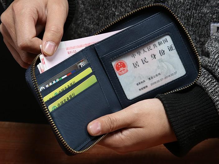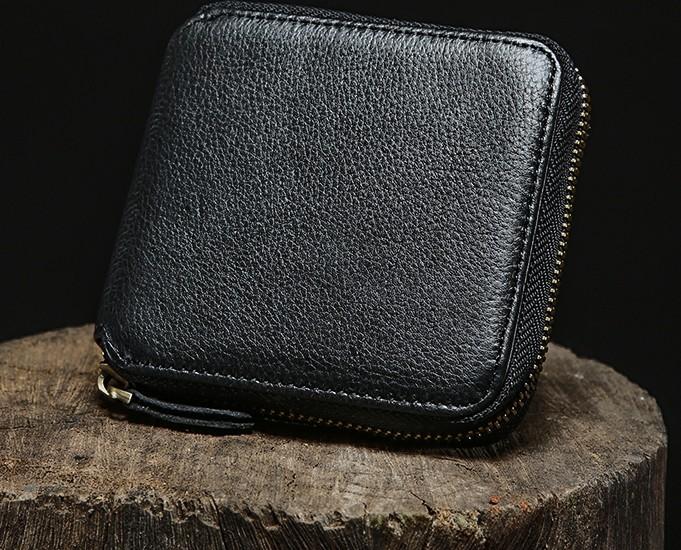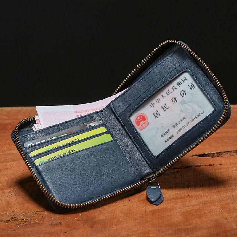 Design: Genuine Leather Mens Zipper Cool billfold Leather Wallet Men Small Wallets Bifold for Men