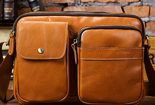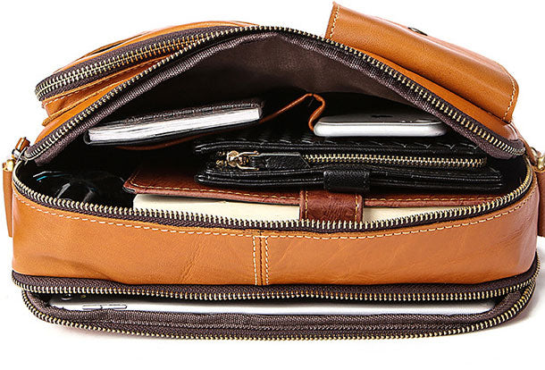 Genuine Leather Messenger Bag Cool Chest Bag Crossbody Bag Travel Bag Hiking Bag for men