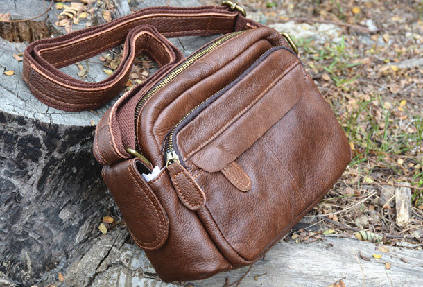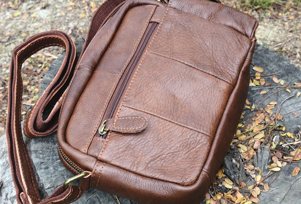 Genuine Leather Messenger Bag Cool Chest Bag Crossbody Bag Travel Bag Hiking Bag for men