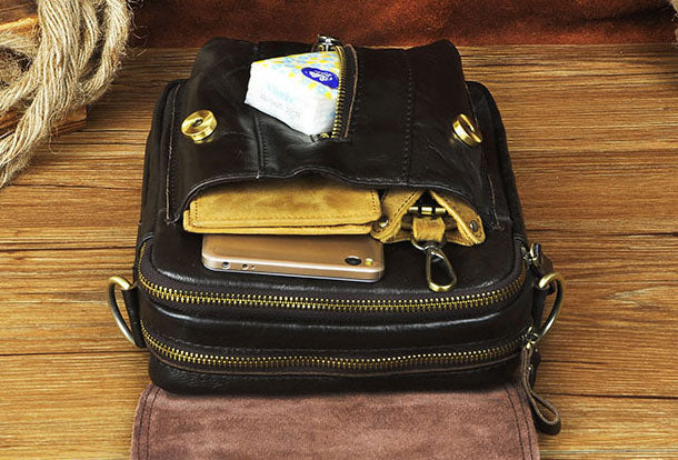Design: Genuine Leather Cool Chest Bag Backpack Sling Bag Travel Bag Hiking Bag For Men