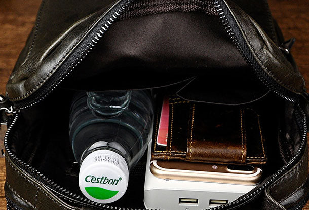 Design: Genuine Leather Cool Chest Bag Backpack Sling Bag Travel Bag Hiking Bag For Men