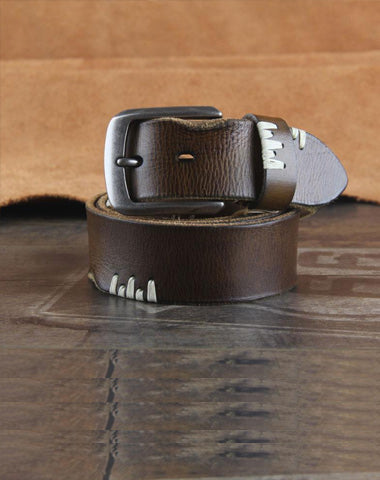 Genuine Leather Punk Rock Biker Trucker Mens Belt Men Black Coffee Belt for Men