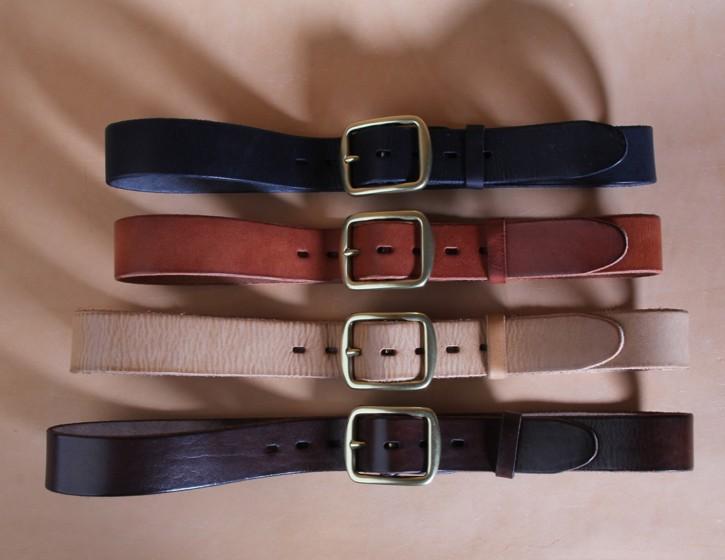 IMPORTANT NOTE: Order your custom leather belt 2" LARGER than your pant size (i.e., 36" pant size = 38" belt). Or, better yet, measure around your waist or hips, wherever you will wear the belt, and ADD 2" to that measurement. If you will be wearing a designer/western style buckle with this belt do NOT add the 2", as the designer/western style buckle adds 2" to the length of the belt.