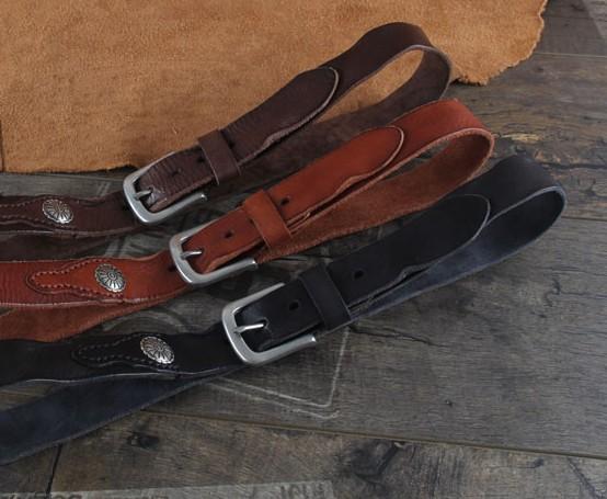 IMPORTANT NOTE: Order your custom leather belt 2" LARGER than your pant size (i.e., 36" pant size = 38" belt). Or, better yet, measure around your waist or hips, wherever you will wear the belt, and ADD 2" to that measurement. If you will be wearing a designer/western style buckle with this belt do NOT add the 2", as the designer/western style buckle adds 2" to the length of the belt.