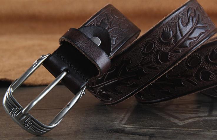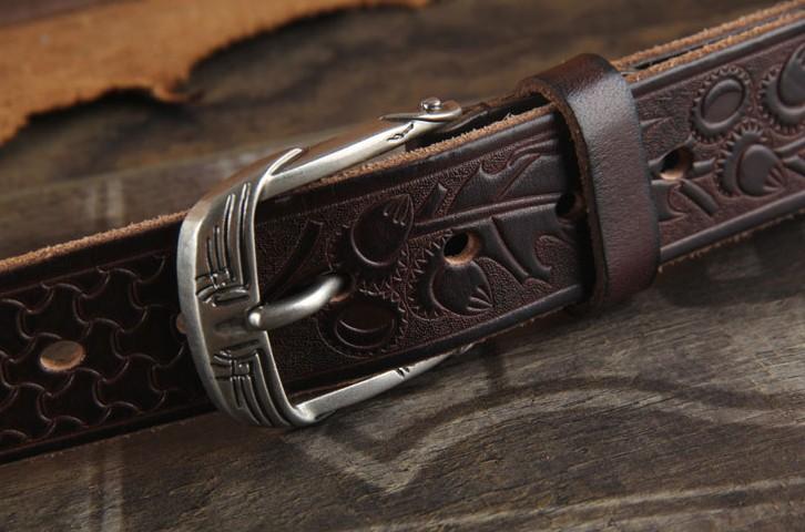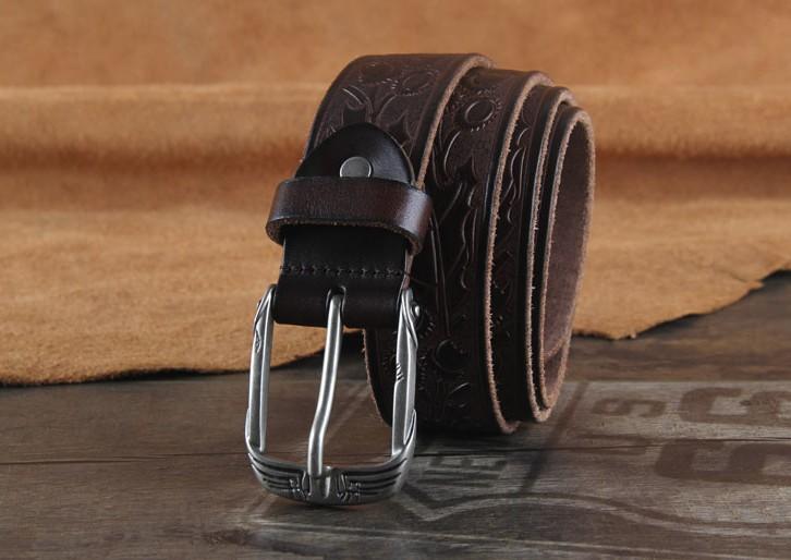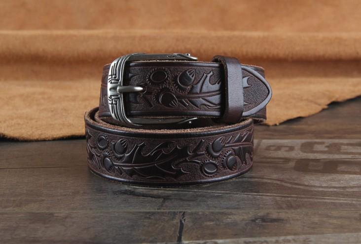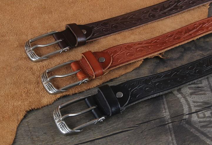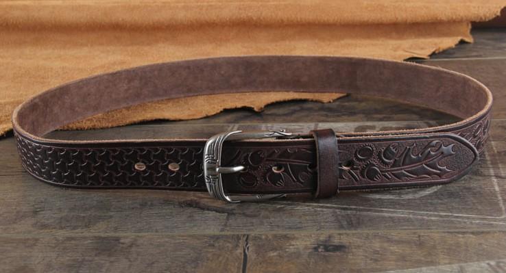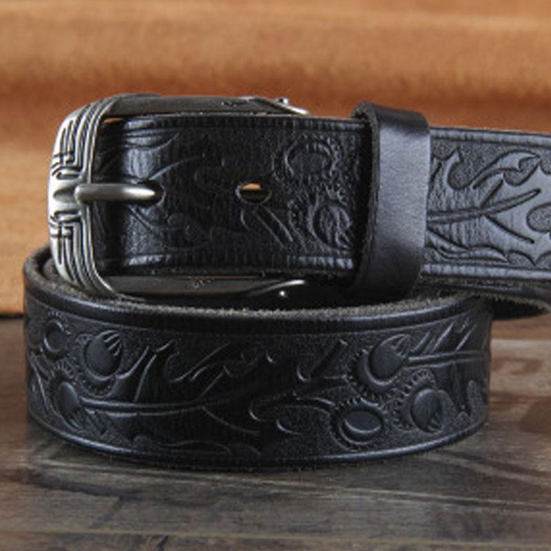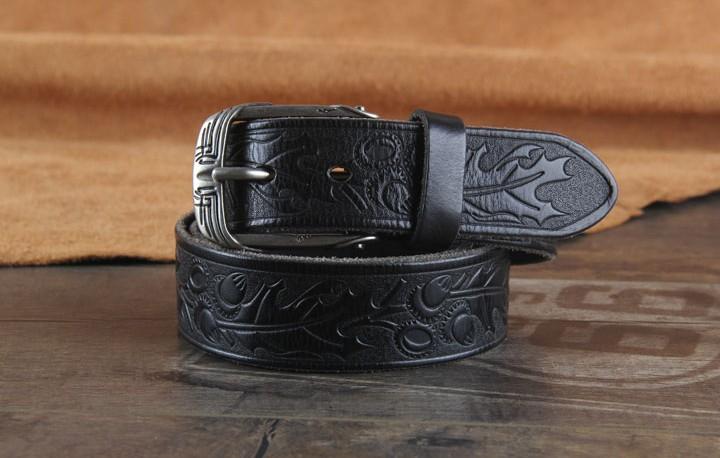 Design: Genuine Leather Punk Rock Biker Tooled Floral Trucker Mens Belt Men Black Coffee Belt for Men