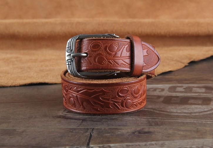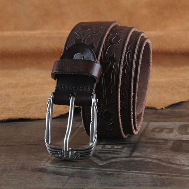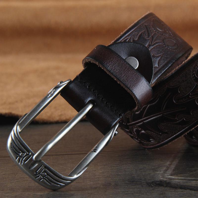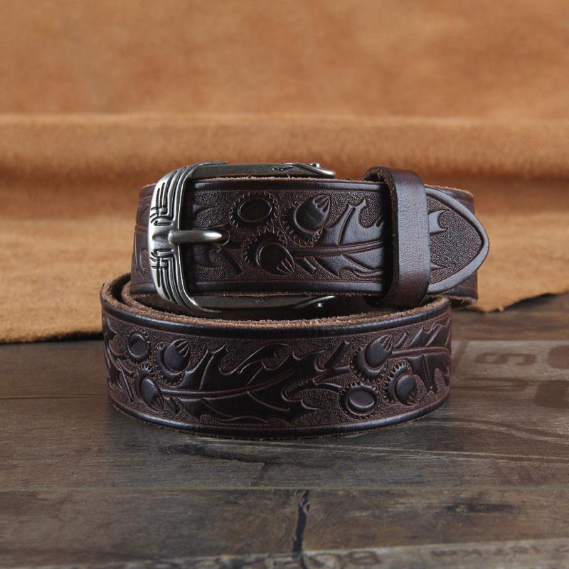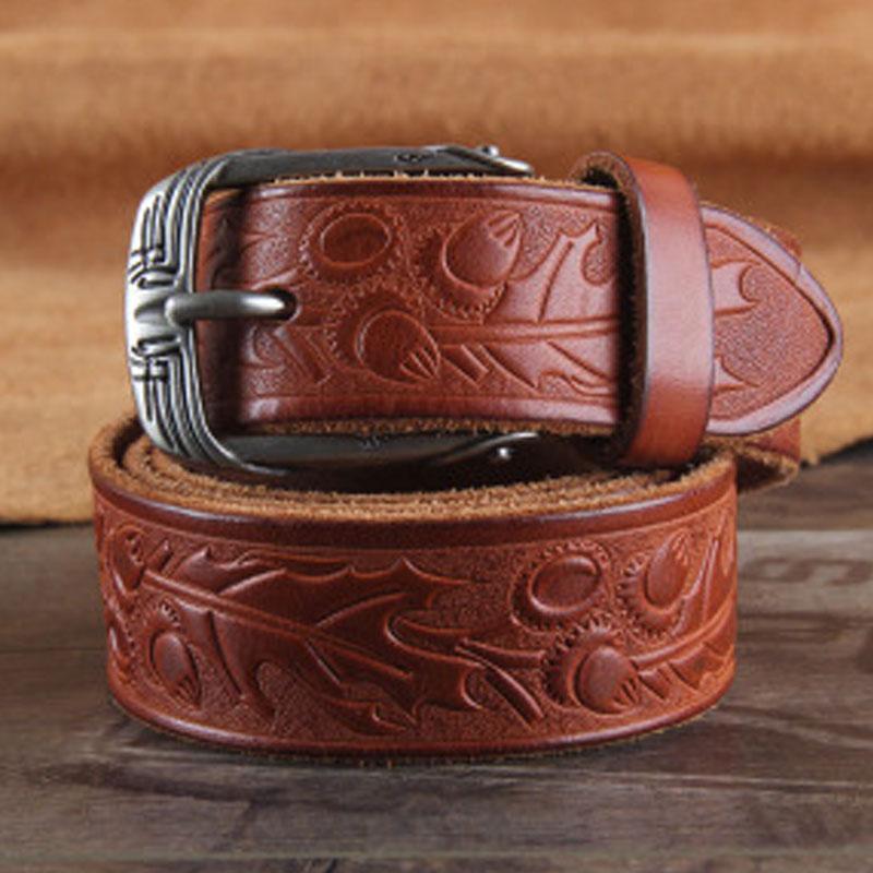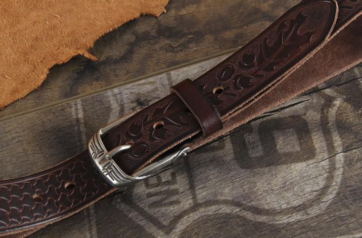 Design: Genuine Leather Punk Rock Biker Tooled Floral Trucker Mens Belt Men Black Coffee Belt for Men