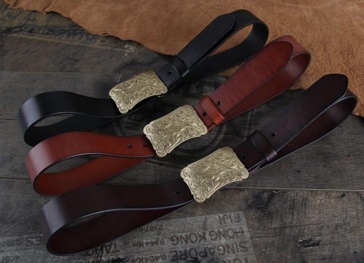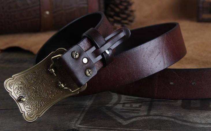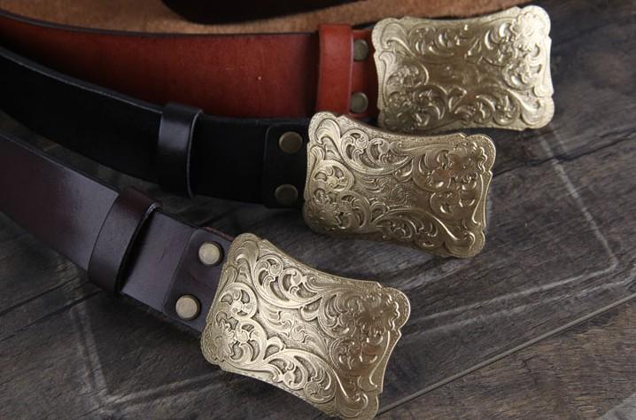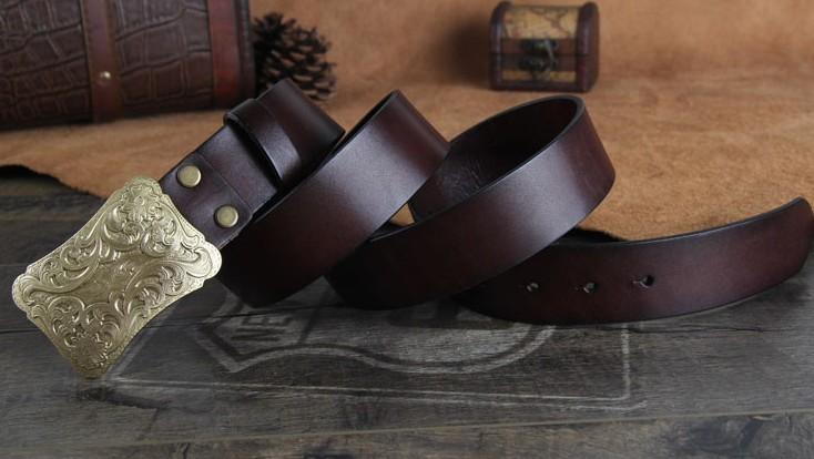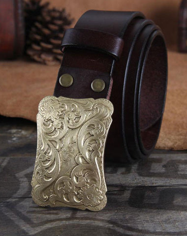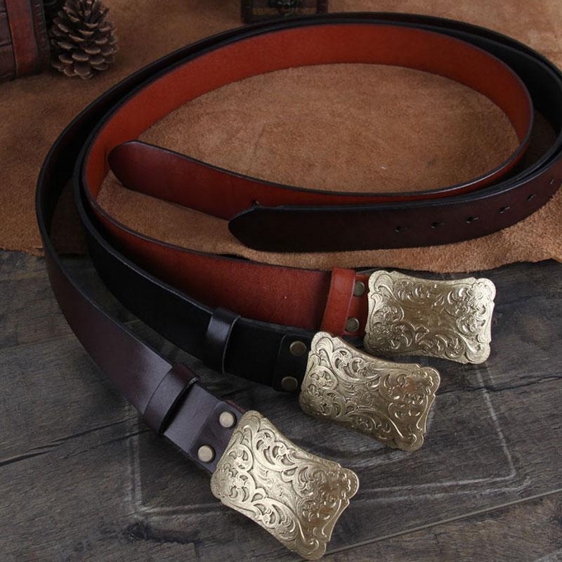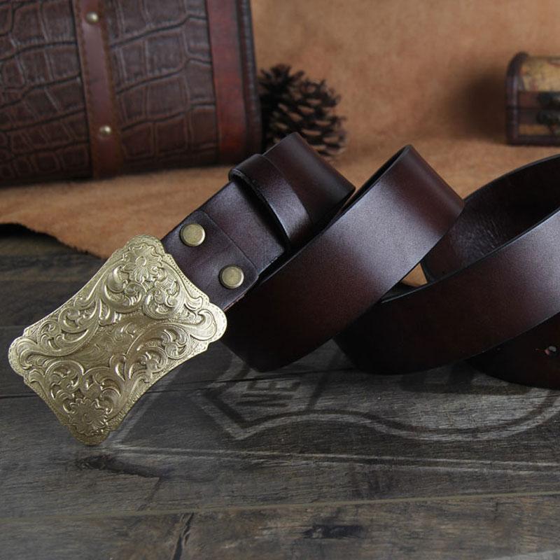 Genuine Leather Punk Rock Biker Trucker Mens Floral Belt Men Black Coffee Belt for Men