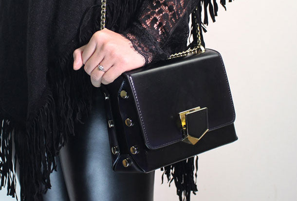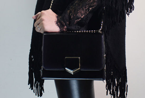 Design: Genuine Leather purse shoulder bag black red for women leather crossbody bag